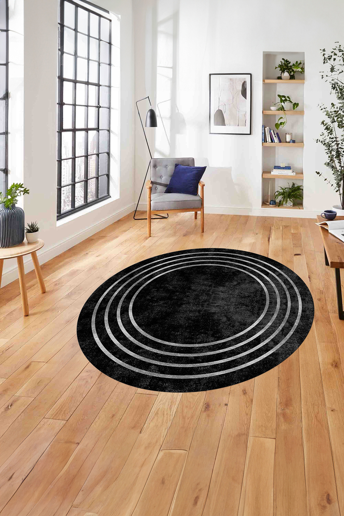 Gri Şeritli Siyah Eskitme Yuvarlak Halı (Makinada Yıkanabilir Kaymaz Dot Taban) - CP524 Gri Şeritli Siyah Eskitme Yuvarlak Halı (Makinada Yıkanabilir Kaymaz Dot Taban) - CP524 Cappio0193 120 x 120