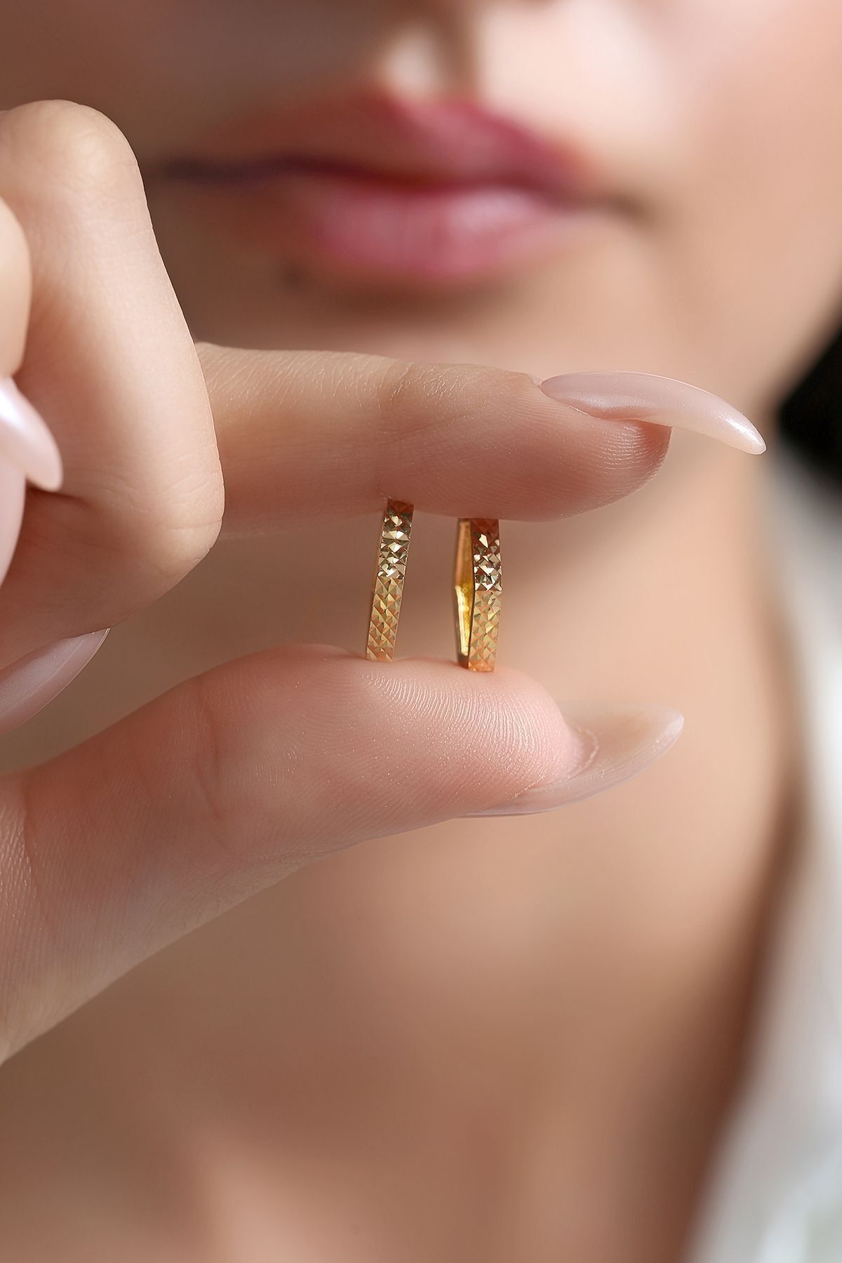 14 Ayar Altın Altıgen Kalemli Küpe 14 Ayar Altın Altıgen Kalemli Küpe GKHLKKPG10-Y تک سایز