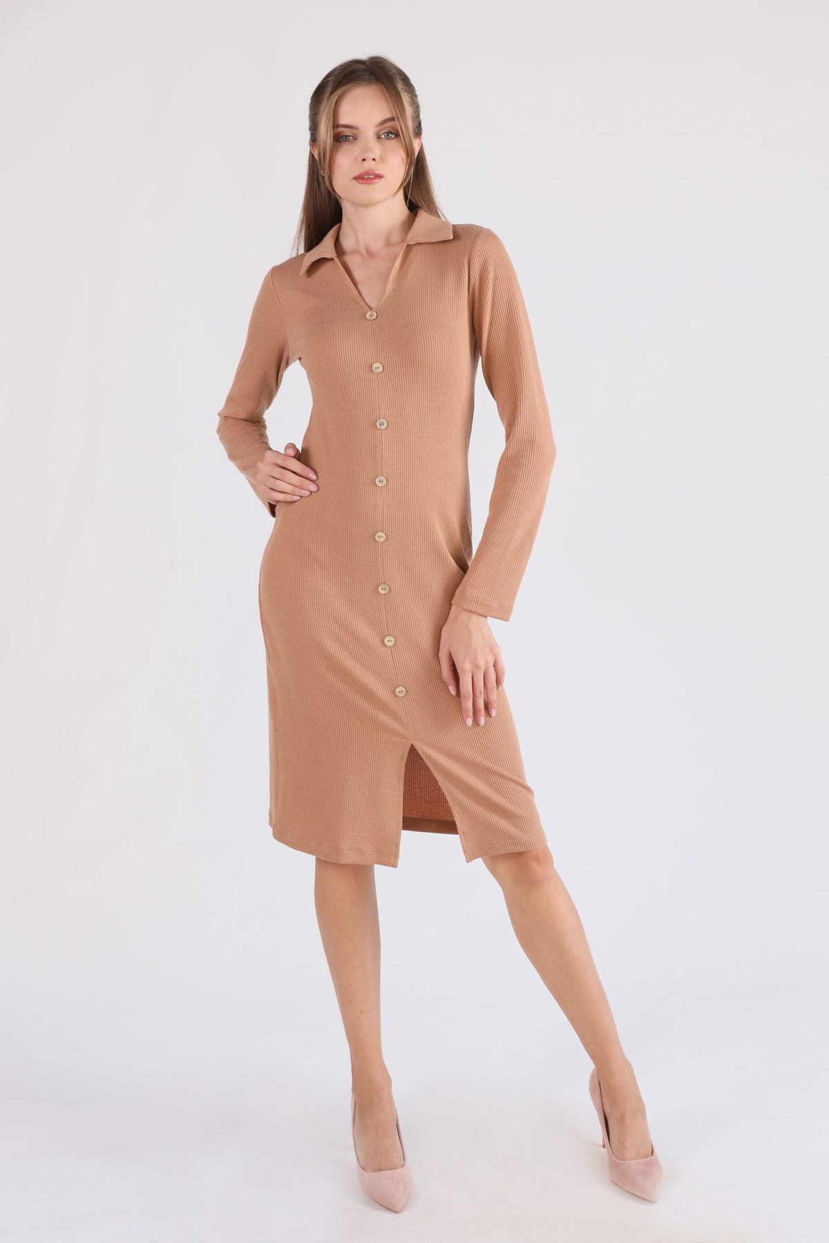 Kadın V Yaka Önden Bağcıklı Uzun Kollu Midi Boy Fitilli Lacivert Elbise Kadın V Yaka Önden Bağcıklı Uzun Kollu Midi Boy Fitilli Lacivert Elbise UNVR034 M