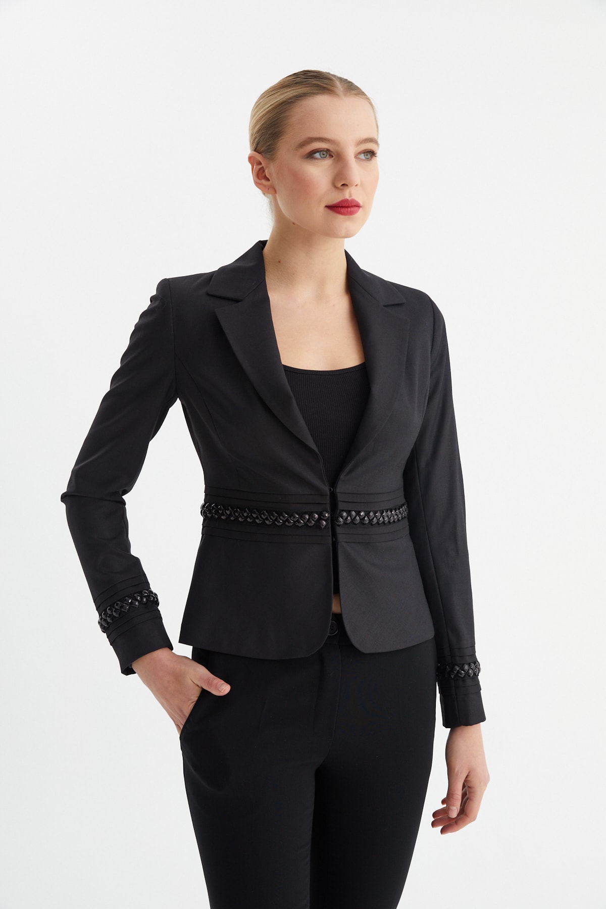 Kadın Siyah Gümüş Fermuarlı Desenli Ceket Kadın Siyah Gümüş Fermuarlı Desenli Ceket 1203-JP JACKET 40