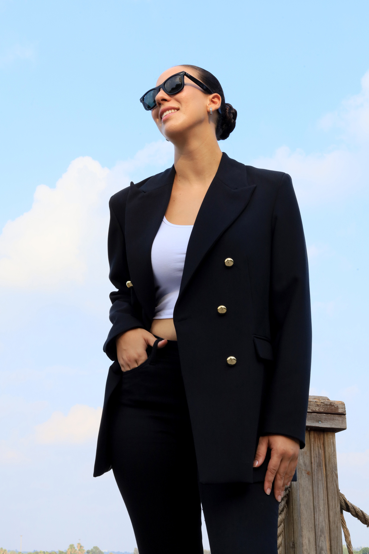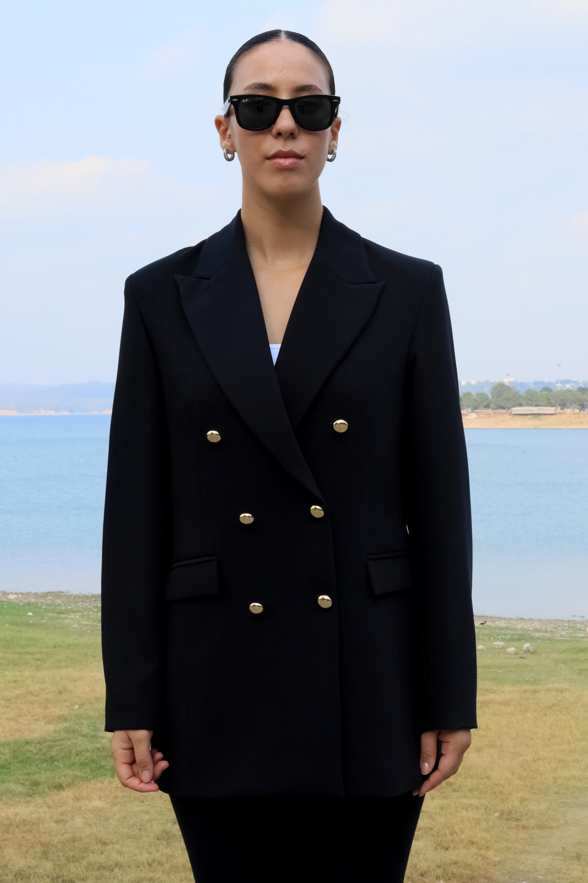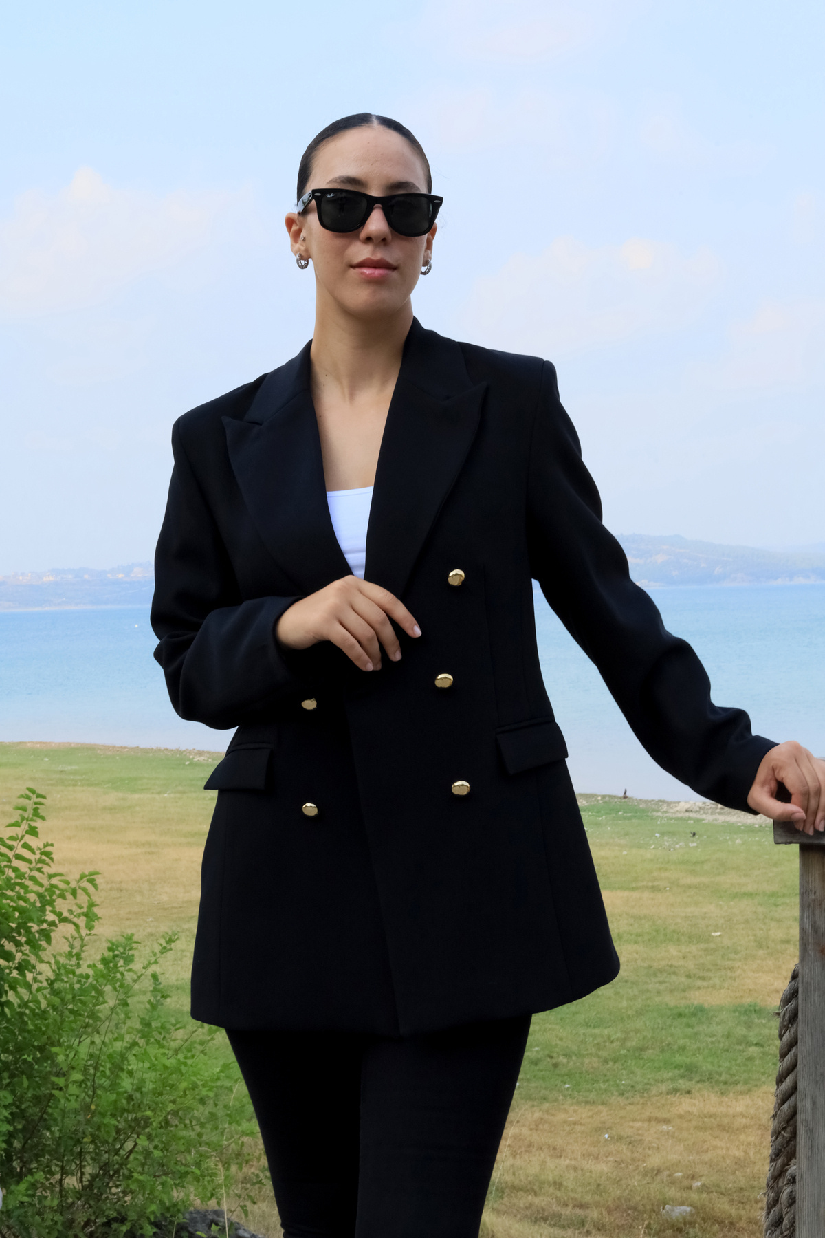 Büyük Beden uzun Gold Düğmeli Siyah Blazer Ceket Büyük Beden uzun Gold Düğmeli Siyah Blazer Ceket ASH5566 42