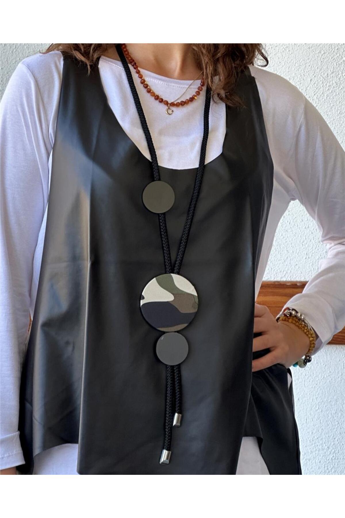 Yeşil Halkalı Deri Uzun Kolye Yeşil Halkalı Deri Uzun Kolye KO20152 تک سایز