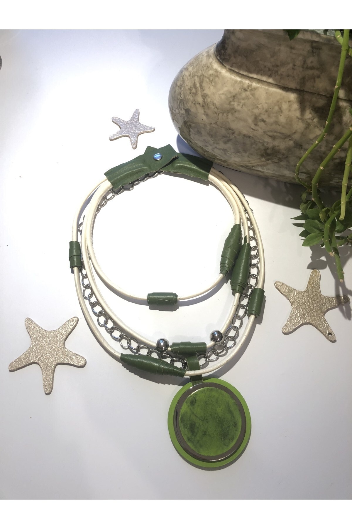 Gri Boyunluk Deri Kolye Gri Boyunluk Deri Kolye KO20150 تک سایز
