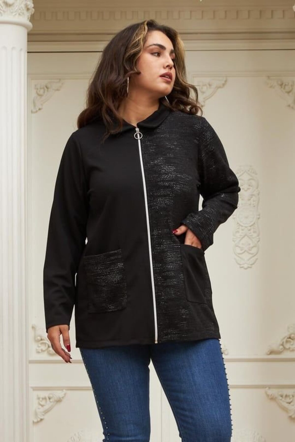 Kadın Lacivert Desenli Jakarlı Kumaş Büyük Beden Ceket Kadın Lacivert Desenli Jakarlı Kumaş Büyük Beden Ceket 88803 54