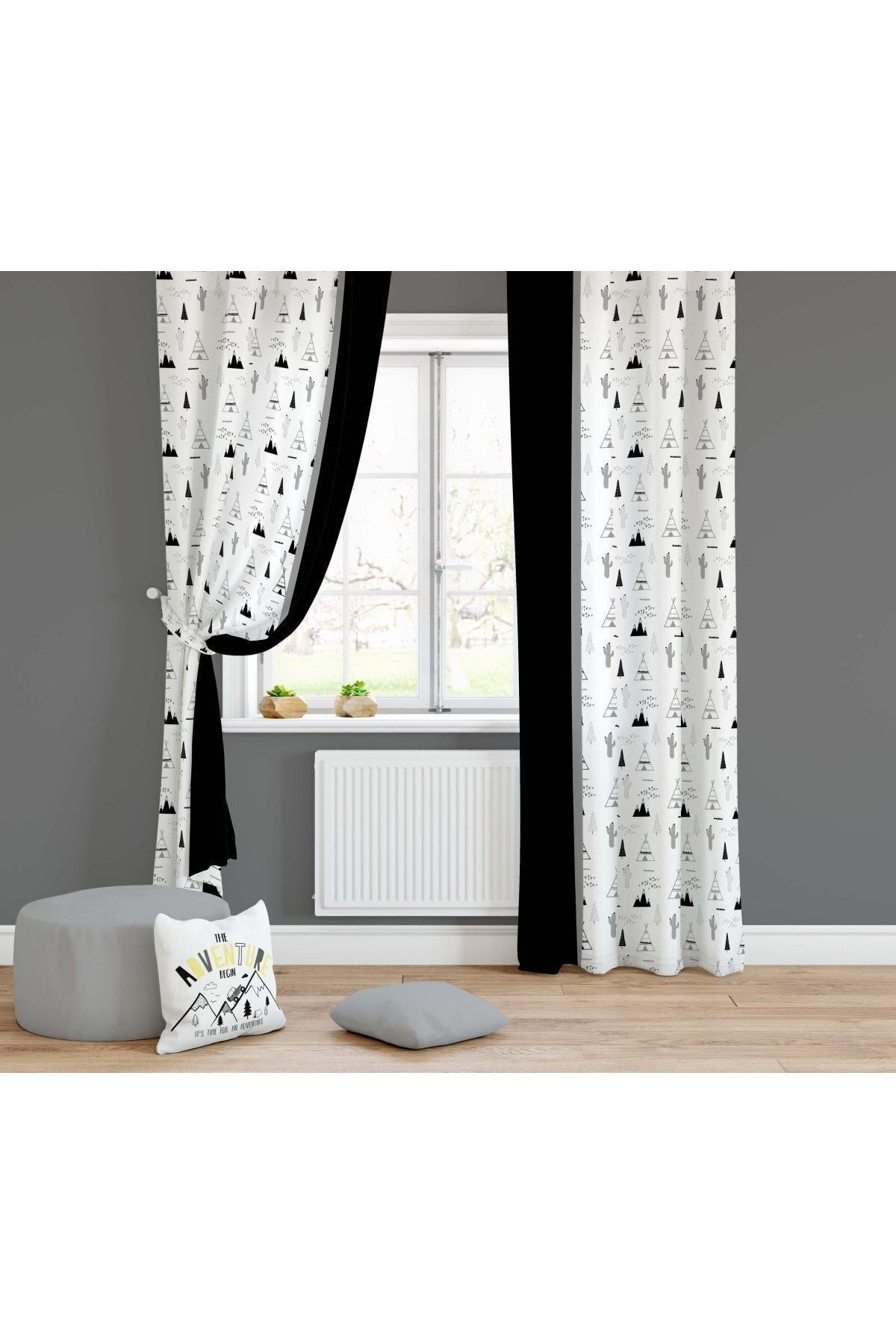 Beyaz Siyah Detaylı Yıldızlı Fon Perde 728 Beyaz Siyah Detaylı Yıldızlı Fon Perde 728 MLBY728 70 x 240