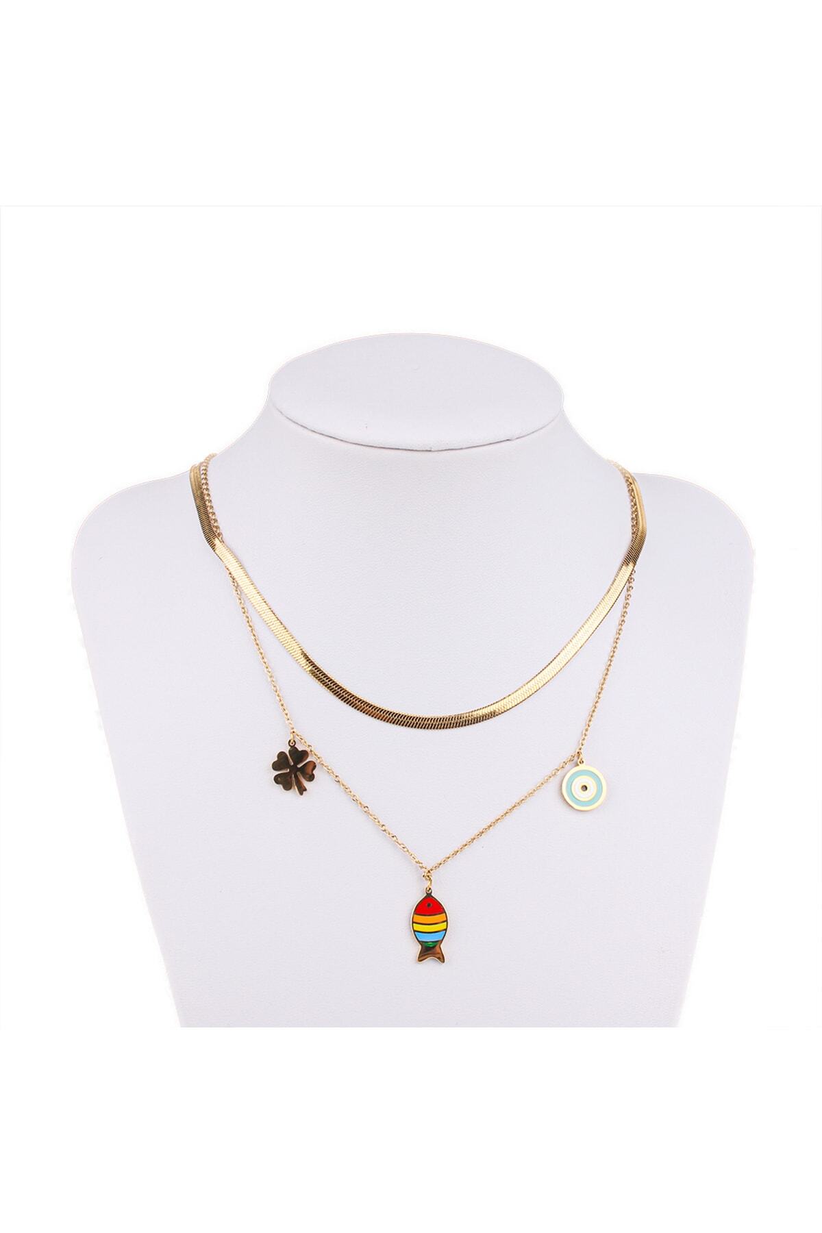 Altın Renk Yıldız Yaprak Detaylı Italyan Kadın Ikili Zincir Kolye Altın Renk Yıldız Yaprak Detaylı Italyan Kadın Ikili Zincir Kolye DMYYK101 45