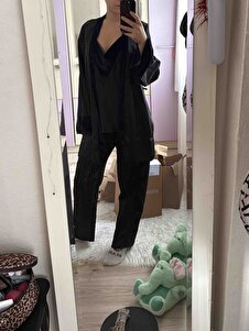 Kadife Saten 3'lü Kadın Pijama Takımı - 2040 Siyah Kadife Saten 3'lü Kadın Pijama Takımı - 2040 Siyah crdn2040 XL