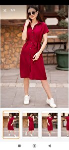 Kadın Bordo Beli Kemerli Kısa Kol Gömlek Elbise ARM-19Y001068 Kadın Bordo Beli Kemerli Kısa Kol Gömlek Elbise ARM-19Y001068 50