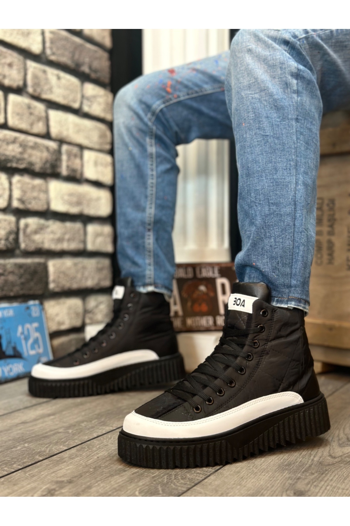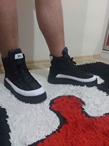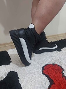 BA0811 Yüksek Taban Siyah Paraşüt Kumaş Beyaz Cilt Detaylı Yarım Bilek Spor Bot BA0811 Yüksek Taban Siyah Paraşüt Kumaş Beyaz Cilt Detaylı Yarım Bilek Spor Bot 2333 44