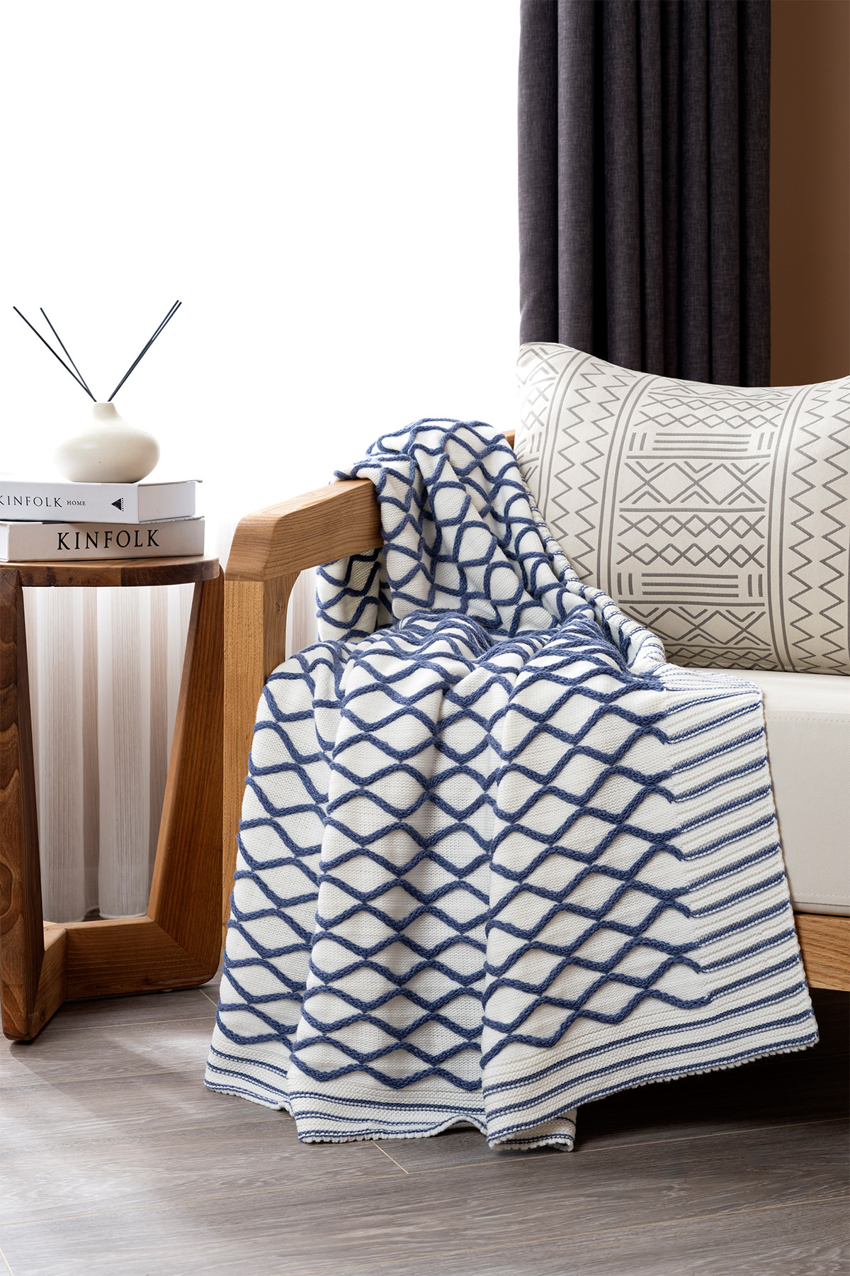 Akrilik Örgü Battaniye Seti Tek Kişilik Lacivert Krem Akrilik Örgü Battaniye Seti Tek Kişilik Lacivert Krem BTST00100101 180 x 220