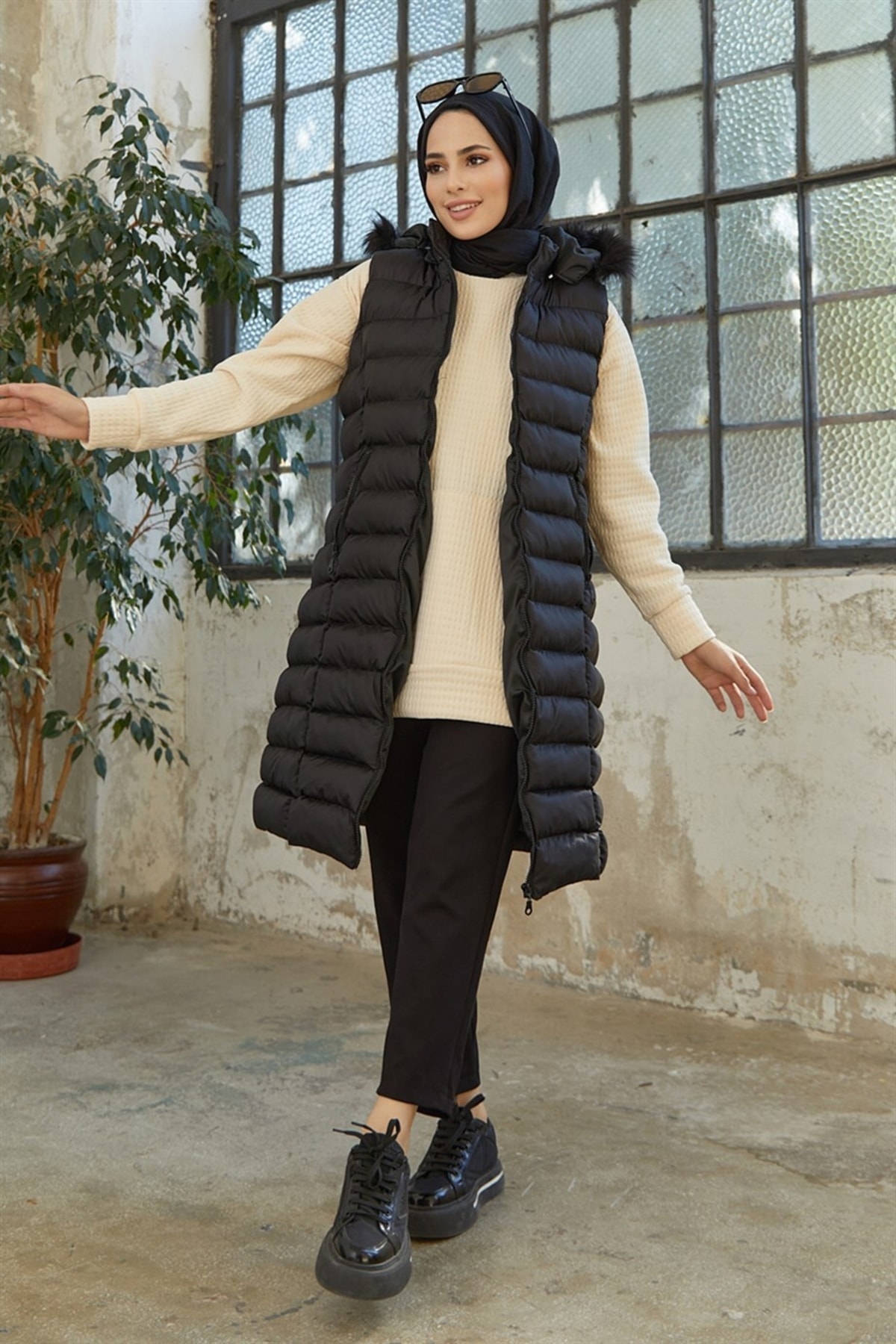 Kadın Siyah Kapüşonlu Şişme Yelek Kadın Siyah Kapüşonlu Şişme Yelek 64919 42