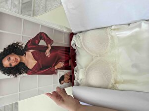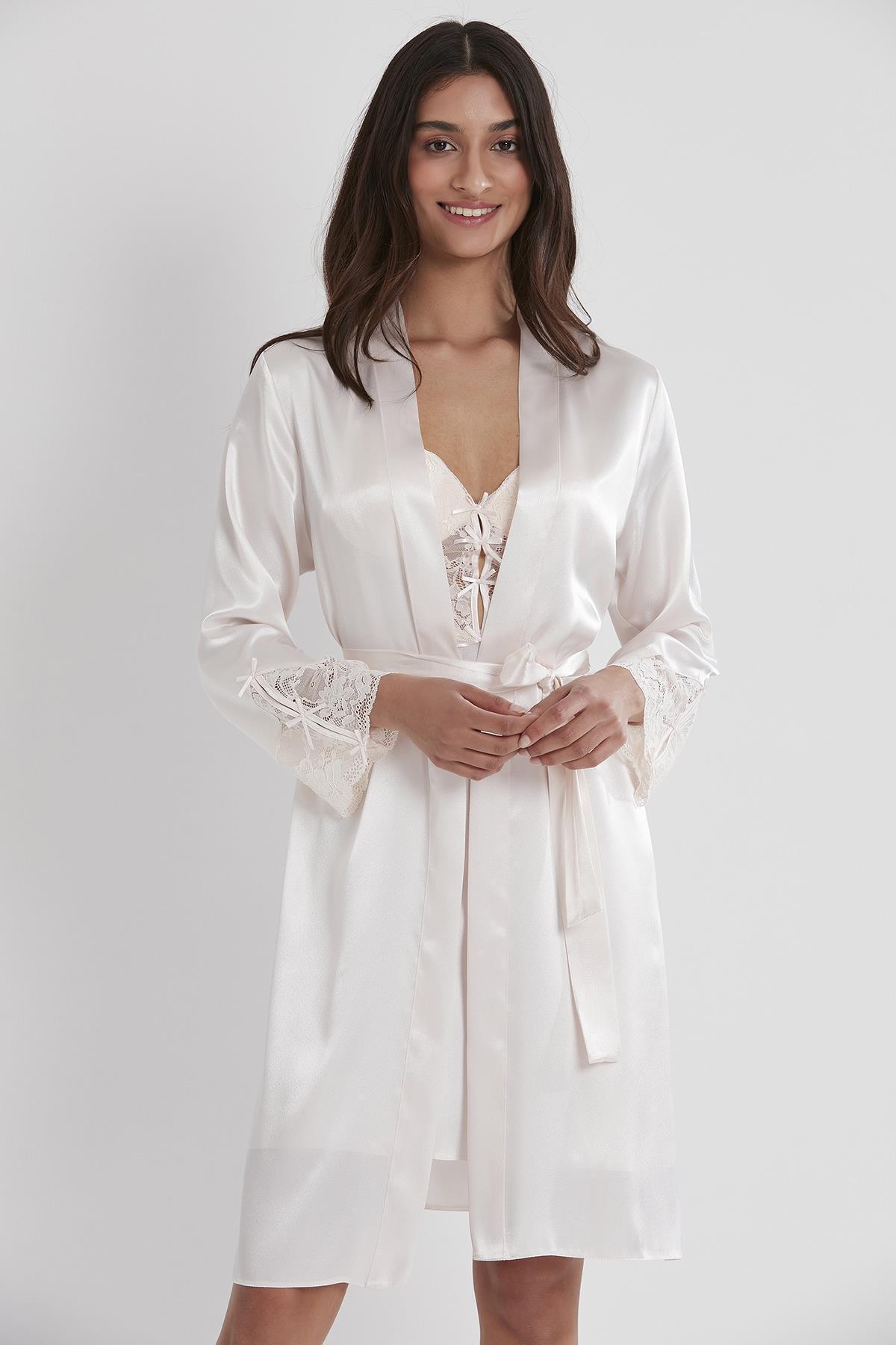 Saten Dantelli Kadın Gecelik Ve Sabahlık Takımı - 4285 Ekru Saten Dantelli Kadın Gecelik Ve Sabahlık Takımı - 4285 Ekru crdn4285 XL