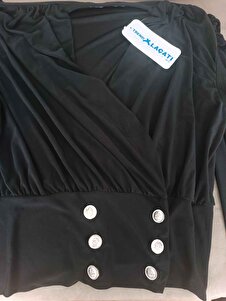 Kadın Siyah Kruvaze Yaka Prenses Kol Düğme Detaylı Crop Bluz ALC-X9815 Kadın Siyah Kruvaze Yaka Prenses Kol Düğme Detaylı Crop Bluz ALC-X9815 XL