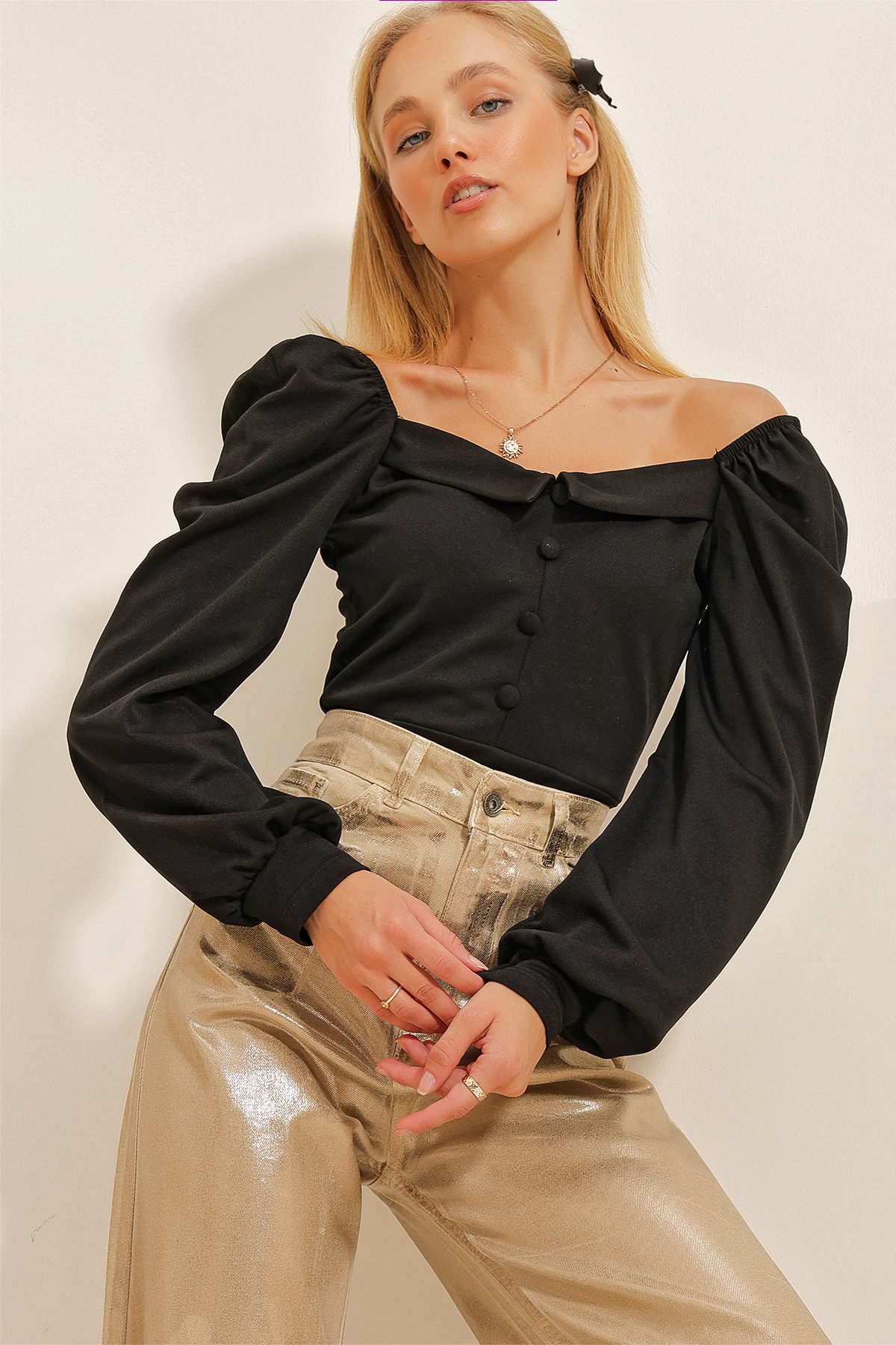 Kadın Beyaz Kruvaze Yaka Prenses Kol Düğme Detaylı Crop Bluz ALC-X9815 Kadın Beyaz Kruvaze Yaka Prenses Kol Düğme Detaylı Crop Bluz ALC-X9815 XL