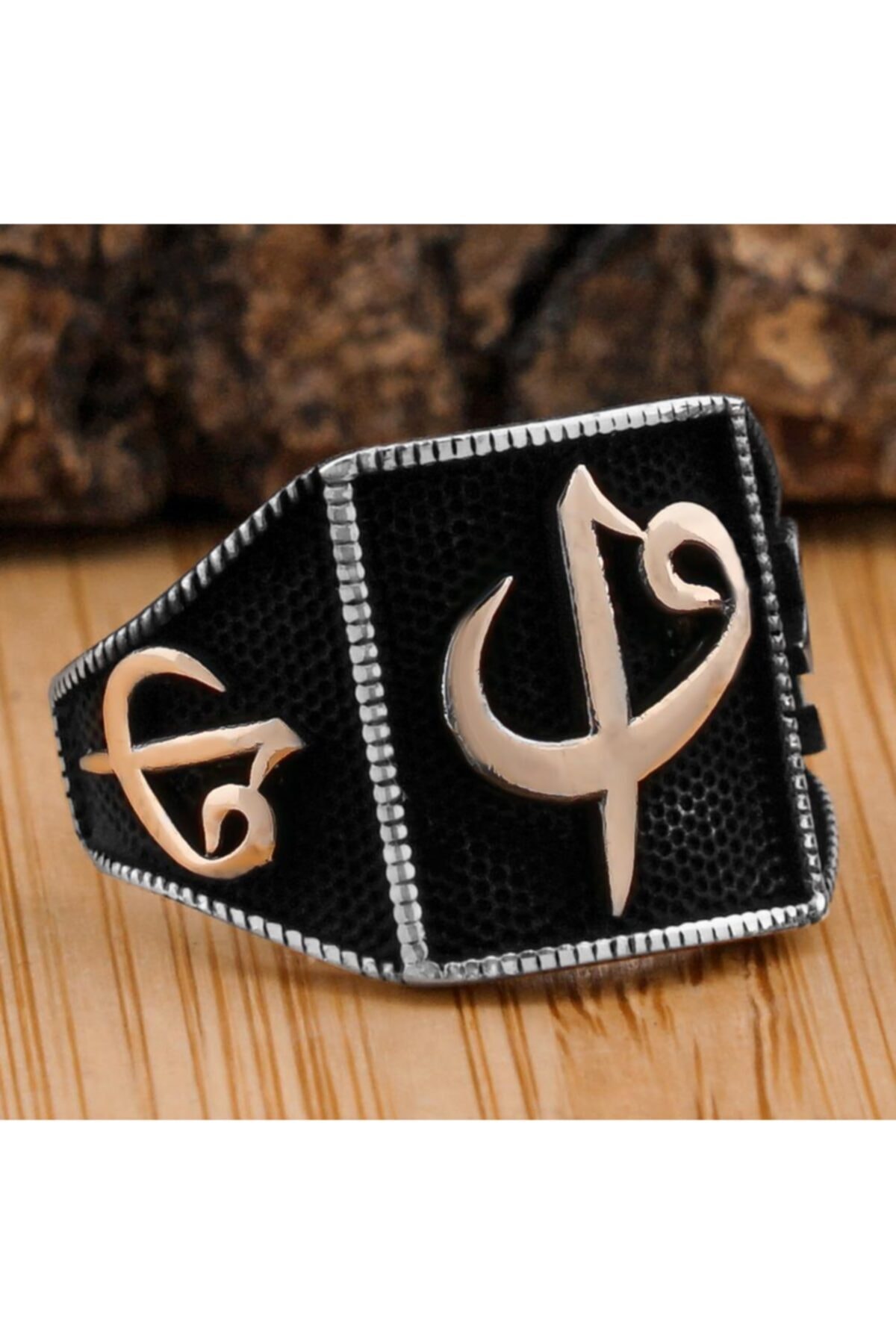 Erkek Siyah Elif Vav Desenli Gümüş Yüzük Erkek Siyah Elif Vav Desenli Gümüş Yüzük ERYUZ-36 30