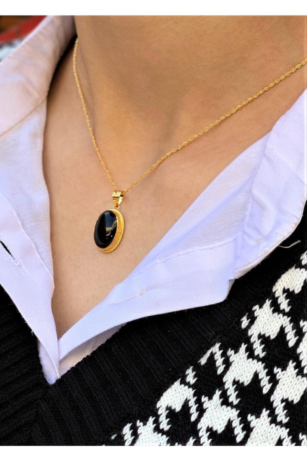 14 Ayar Altın Oval Oniks Kolye 14 Ayar Altın Oval Oniks Kolye KLYOVLONKS تک سایز