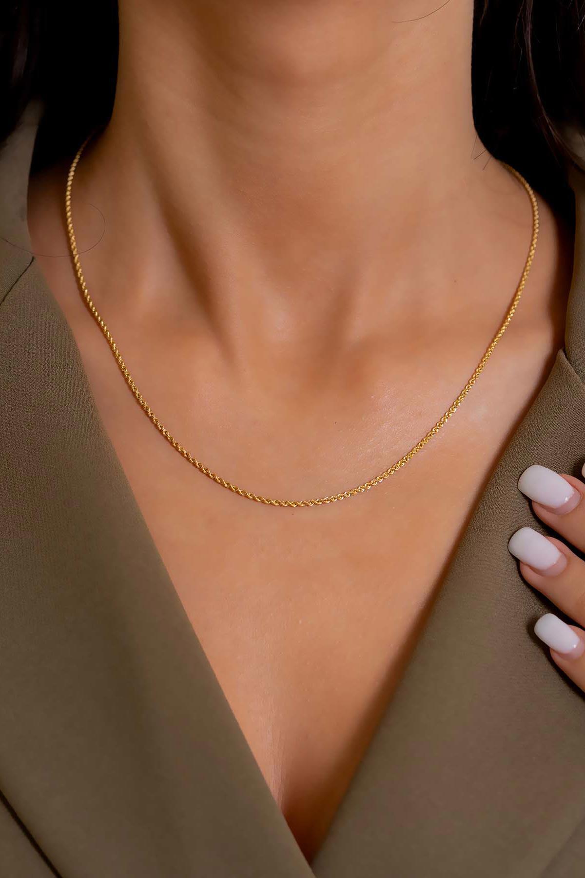 14 Ayar Altin Halat Burgu Zincir Kolye 1 mm 14 Ayar Altin Halat Burgu Zincir Kolye 1 mm KLYHLT1MKRN 40 cm