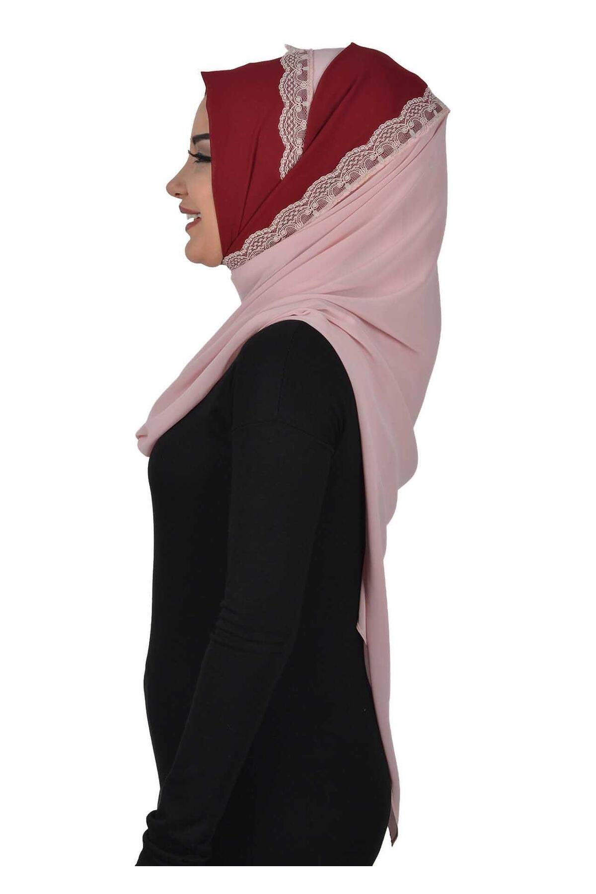 Pratik Şifon Şal,PS-23,Bordo - Pudra Pratik Şifon Şal,PS-23,Bordo - Pudra تک سایز