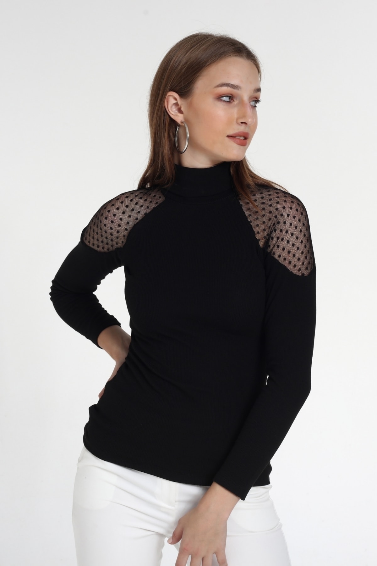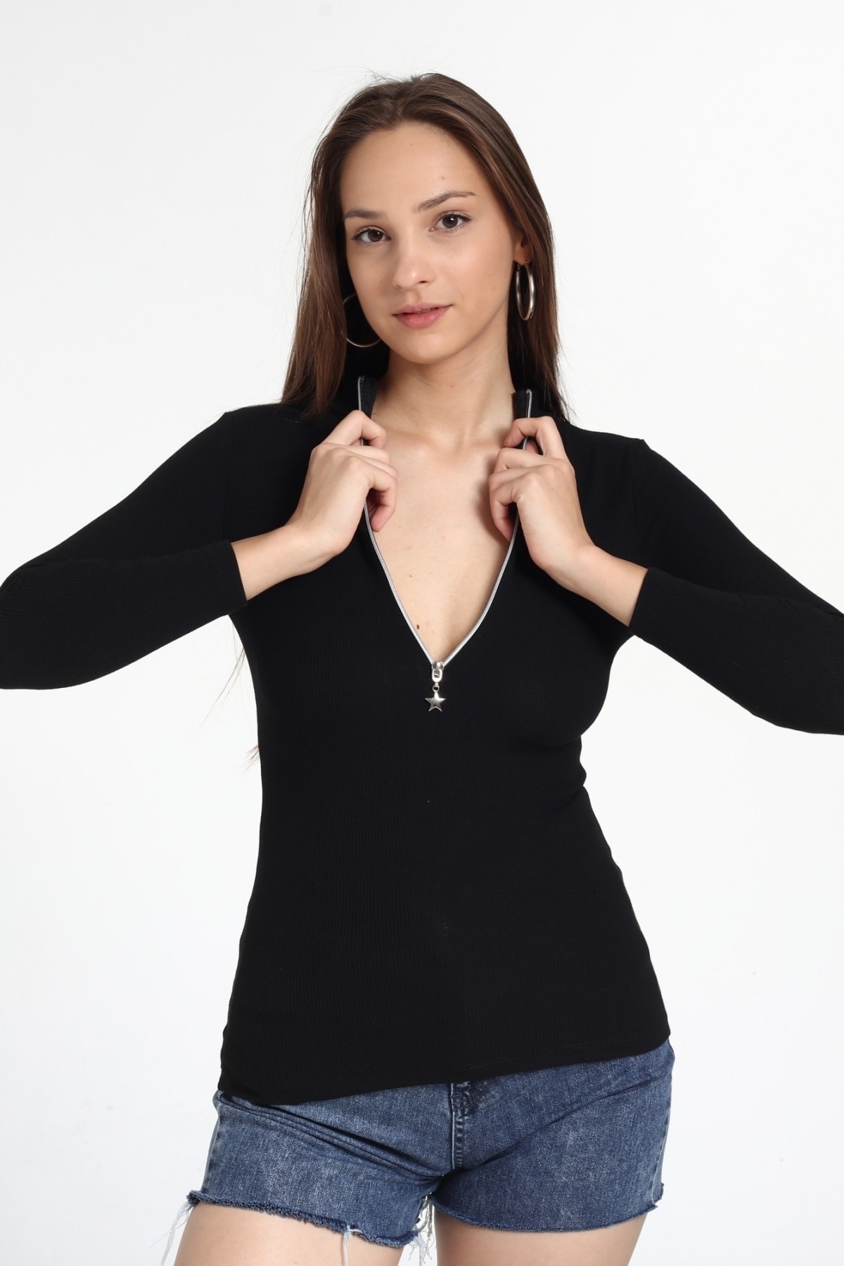Kadın Kaşkorse Omuz Ve Fermuar Detaylı Bluz Kadın Kaşkorse Omuz Ve Fermuar Detaylı Bluz KKO-00-1084 XL