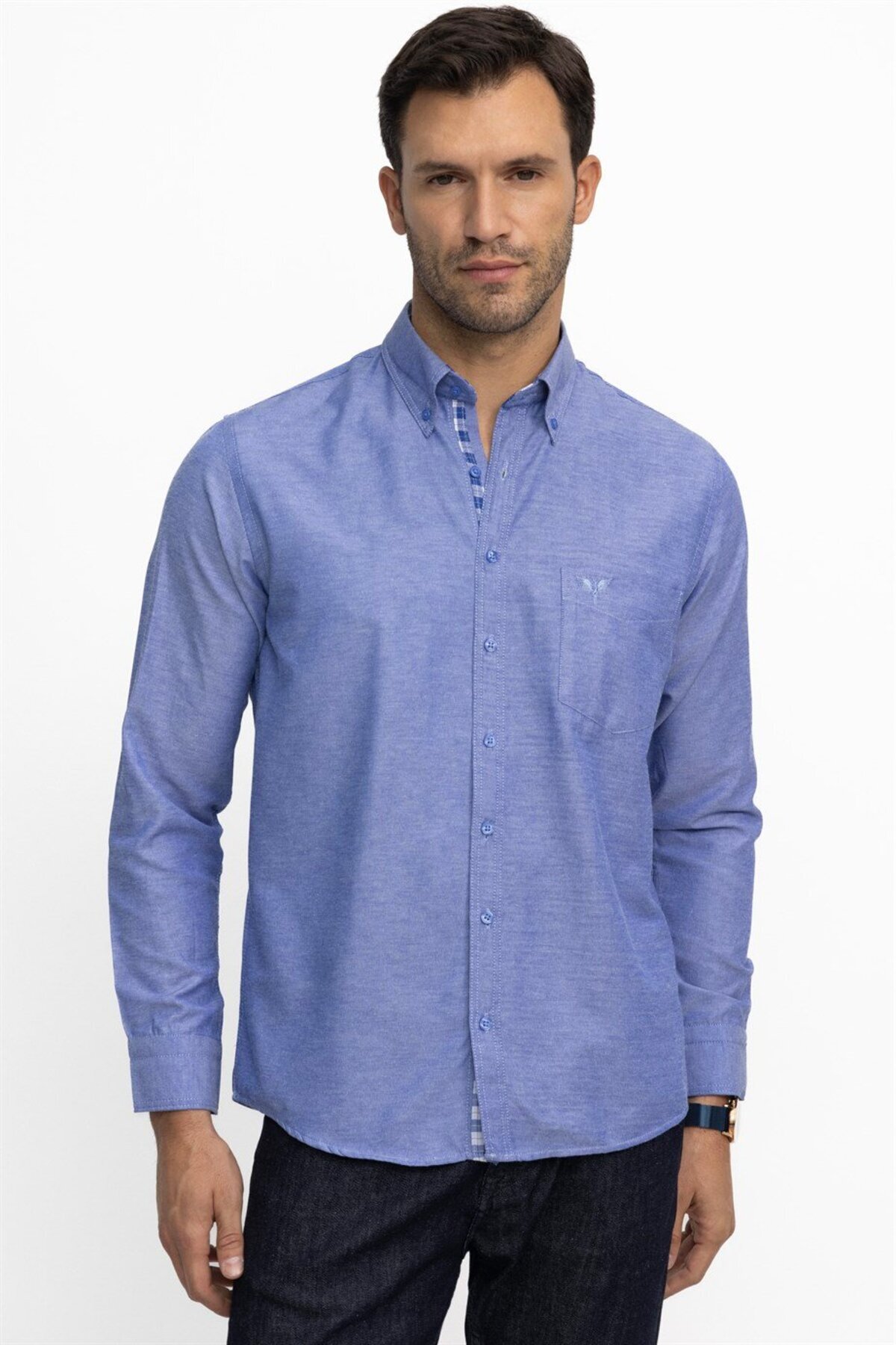 Klasik Fit Uzun Kollu Düğmeli Yaka Pamuklu Kolay Ütü Oxford Düz Erkek Gömlek Klasik Fit Uzun Kollu Düğmeli Yaka Pamuklu Kolay Ütü Oxford Düz Erkek Gömlek KL180042-503 2XL