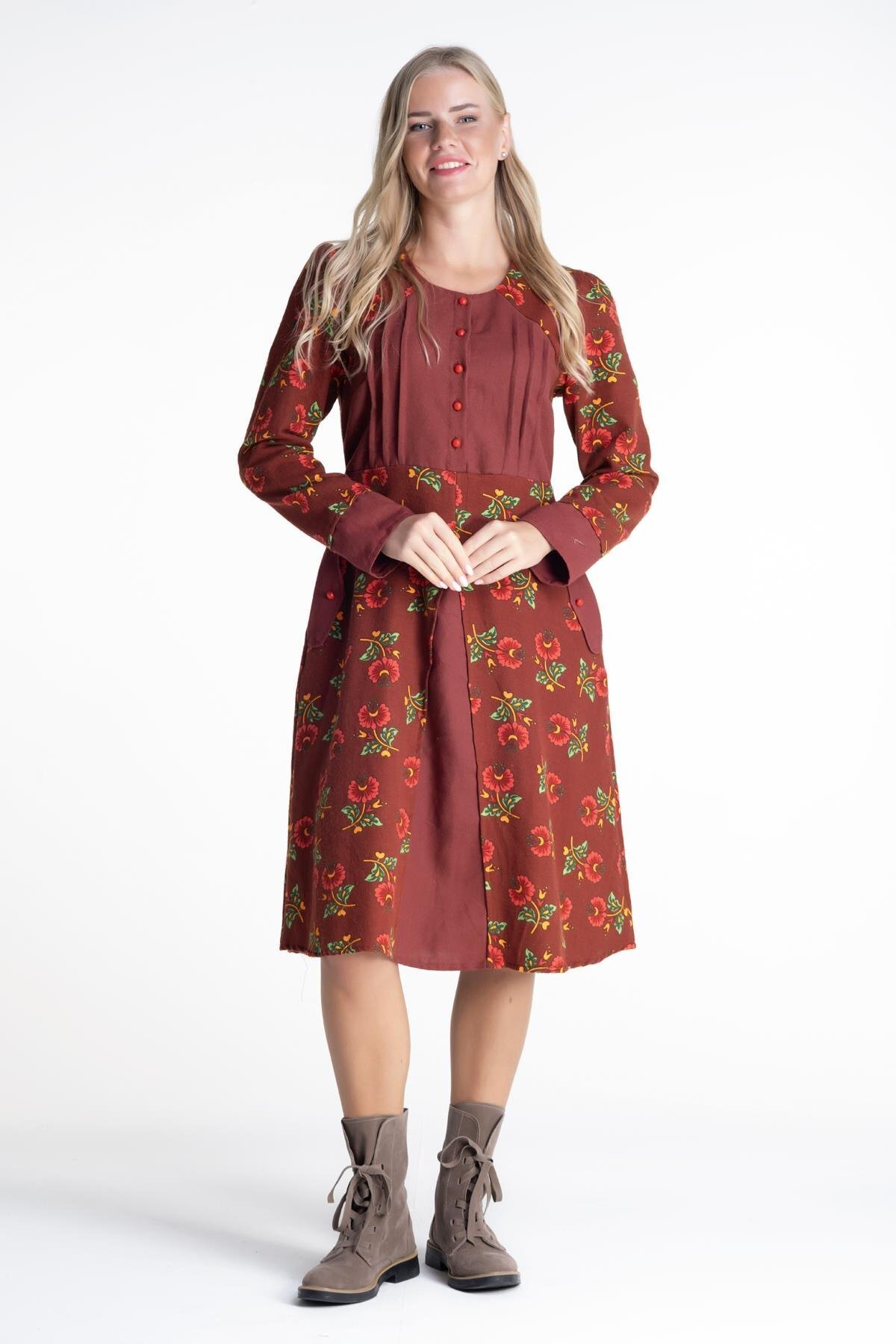 Kendine Özgün, Beli Büzgülü Fermuarlı Cepli Kışlık Pazen Elbise Kendine Özgün, Beli Büzgülü Fermuarlı Cepli Kışlık Pazen Elbise 17537 2XL