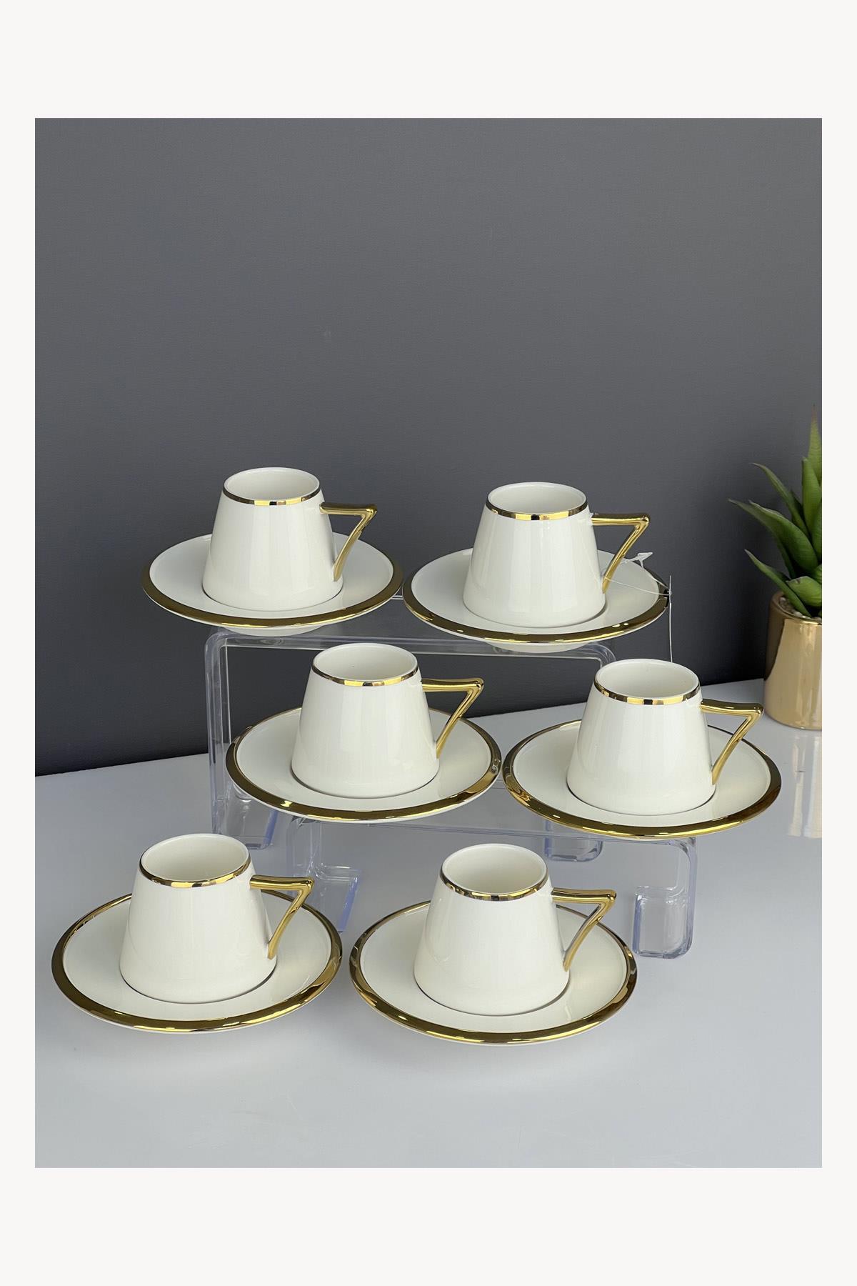Ella Gold Yaldız Renkli 90 ml 6 Kişilik Porselen Kahve Fincanı Takımı 0132 Ella Gold Yaldız Renkli 90 ml 6 Kişilik Porselen Kahve Fincanı Takımı 0132 HXF-21-0132/12 تک سایز