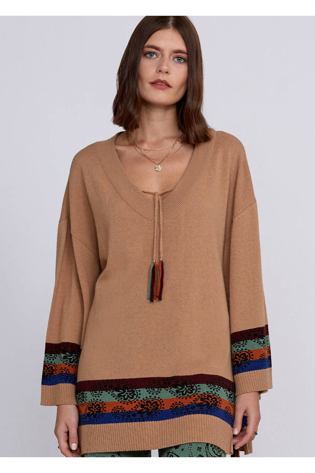 Kaşmir Yün Karışımlı V Yaka Camel Triko Tunik Kaşmir Yün Karışımlı V Yaka Camel Triko Tunik 2204042017 L