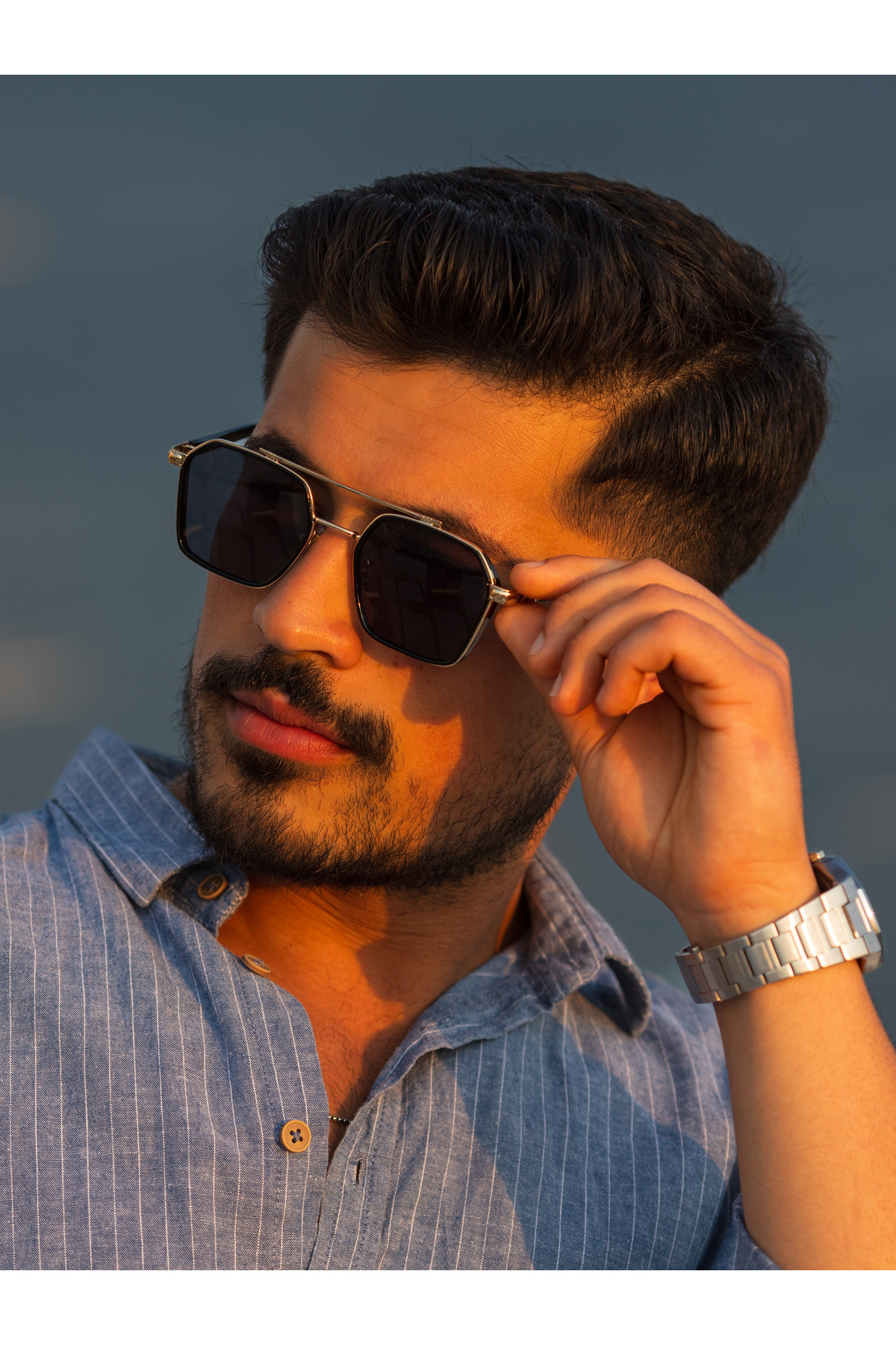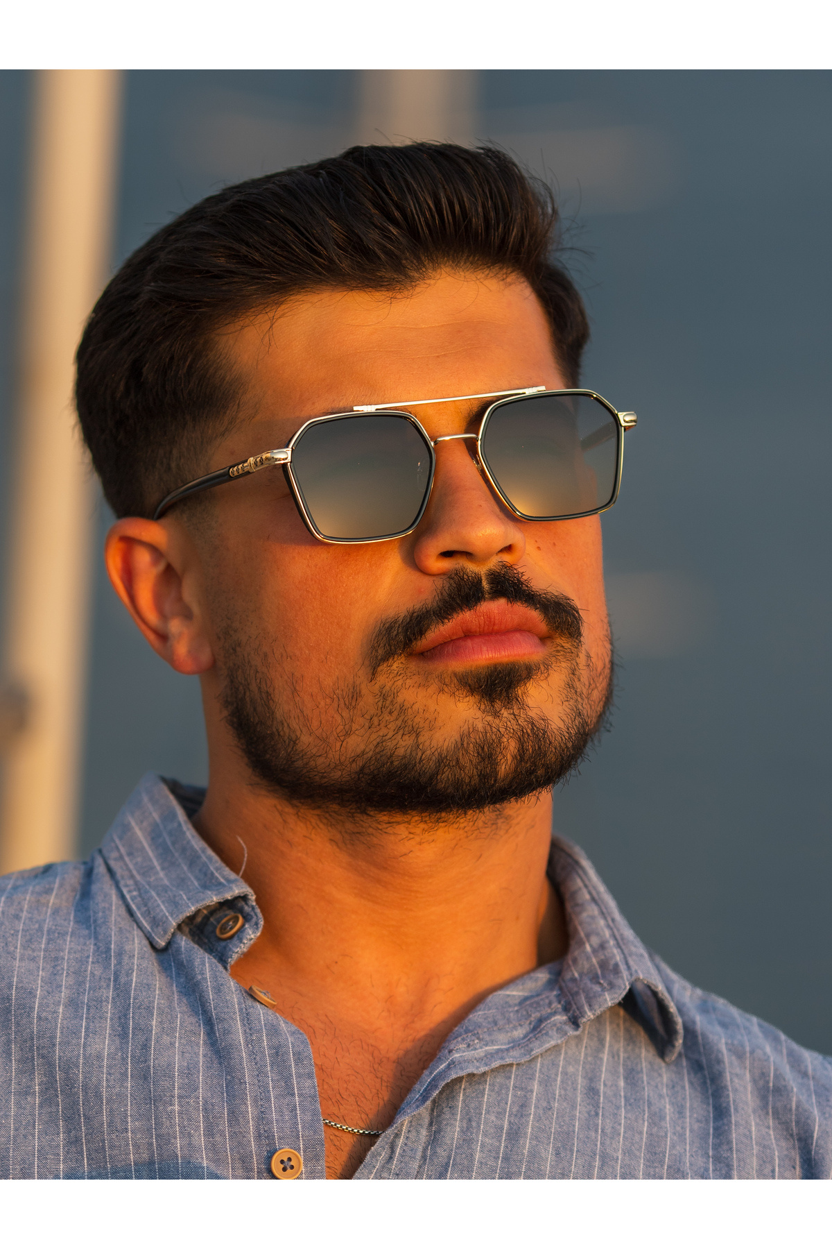 Gold Siyah Çerçeve Siyah Cam Erkek Güneş Gözlüğü Uv400 Korumalı Gold Siyah Çerçeve Siyah Cam Erkek Güneş Gözlüğü Uv400 Korumalı AE0039 تک سایز