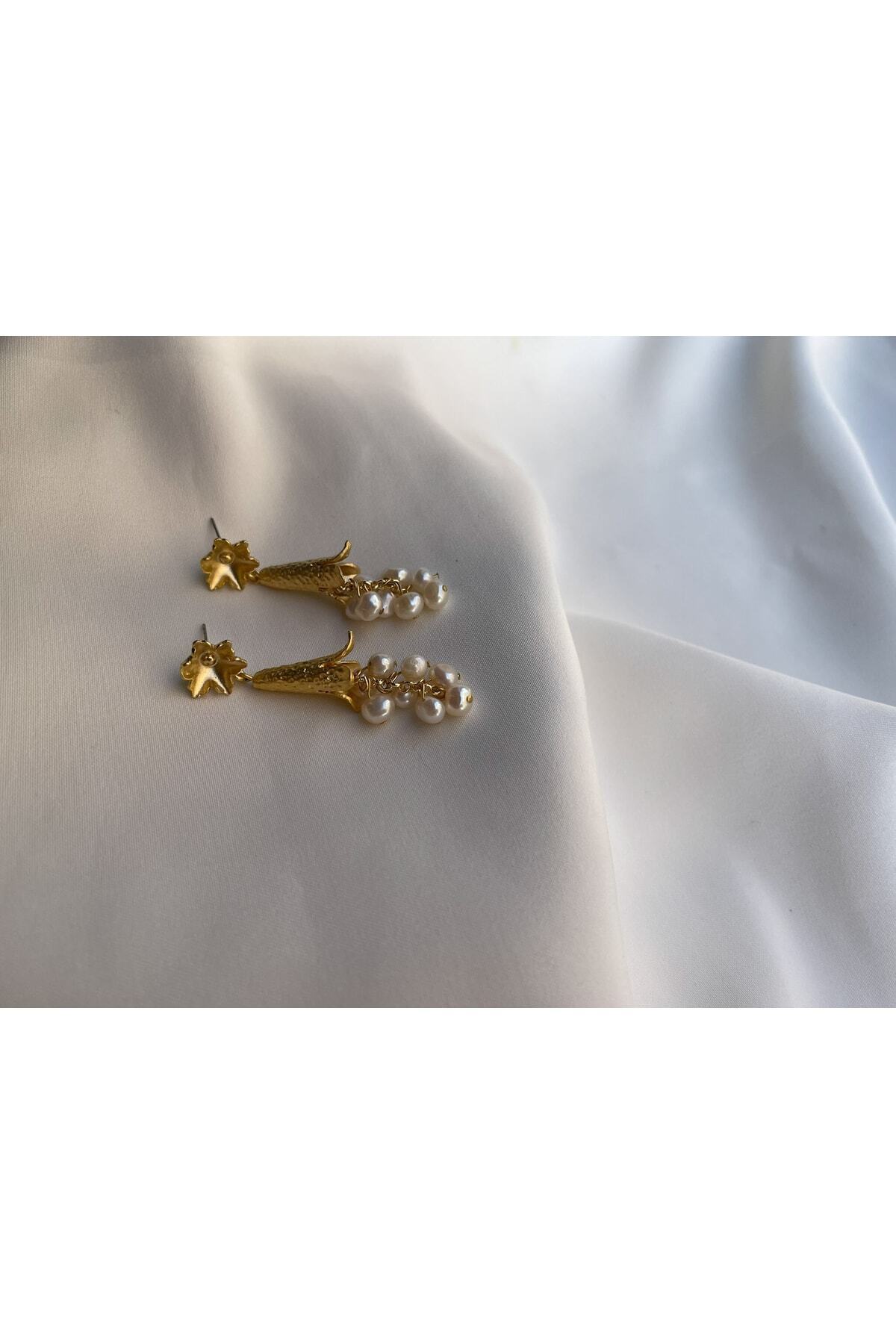 Gerçek Tatlı Su Incisi Sallantı Küpe, Özel Tasarım Mat Altın Kaplama Gerçek Tatlı Su Incisi Sallantı Küpe, Özel Tasarım Mat Altın Kaplama MİR444916 تک سایز
