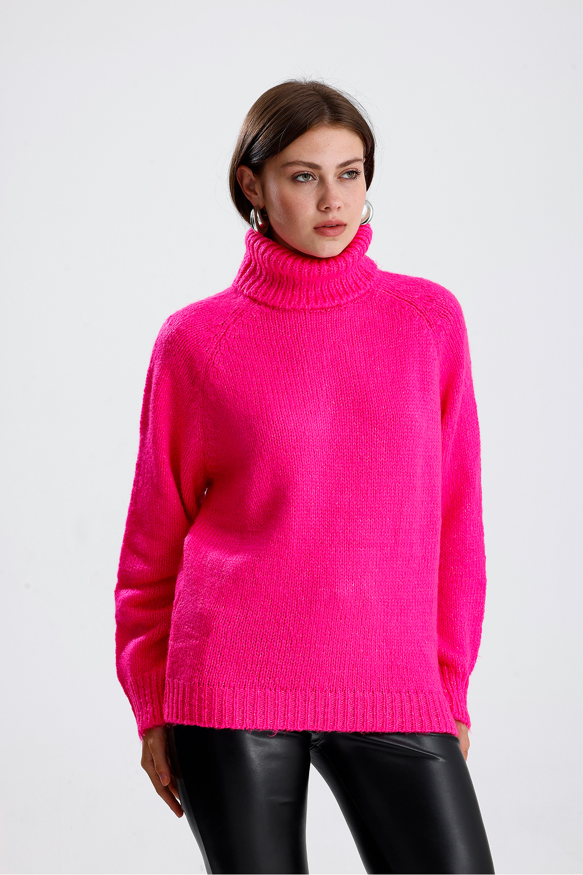 Kadın Fuşya Boğazlı Kazak Yarasa Kol Kazak Kadın Fuşya Boğazlı Kazak Yarasa Kol Kazak 360bnd Standart