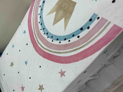Gökkuşağı Ve Taç Desenli Çocuk Yatak Örtüsü Gökkuşağı Ve Taç Desenli Çocuk Yatak Örtüsü 92353 تک سایز
