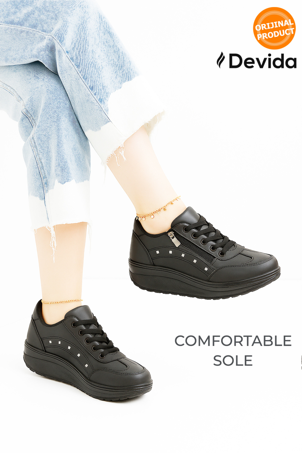 Kadın Siyah Spor Ayakkabı 6 Cm Günlük Yüksek Rahat Taban Sneaker X300 Vega Serisi Kadın Siyah Spor Ayakkabı 6 Cm Günlük Yüksek Rahat Taban Sneaker X300 Vega Serisi PİKX2301-X300 40