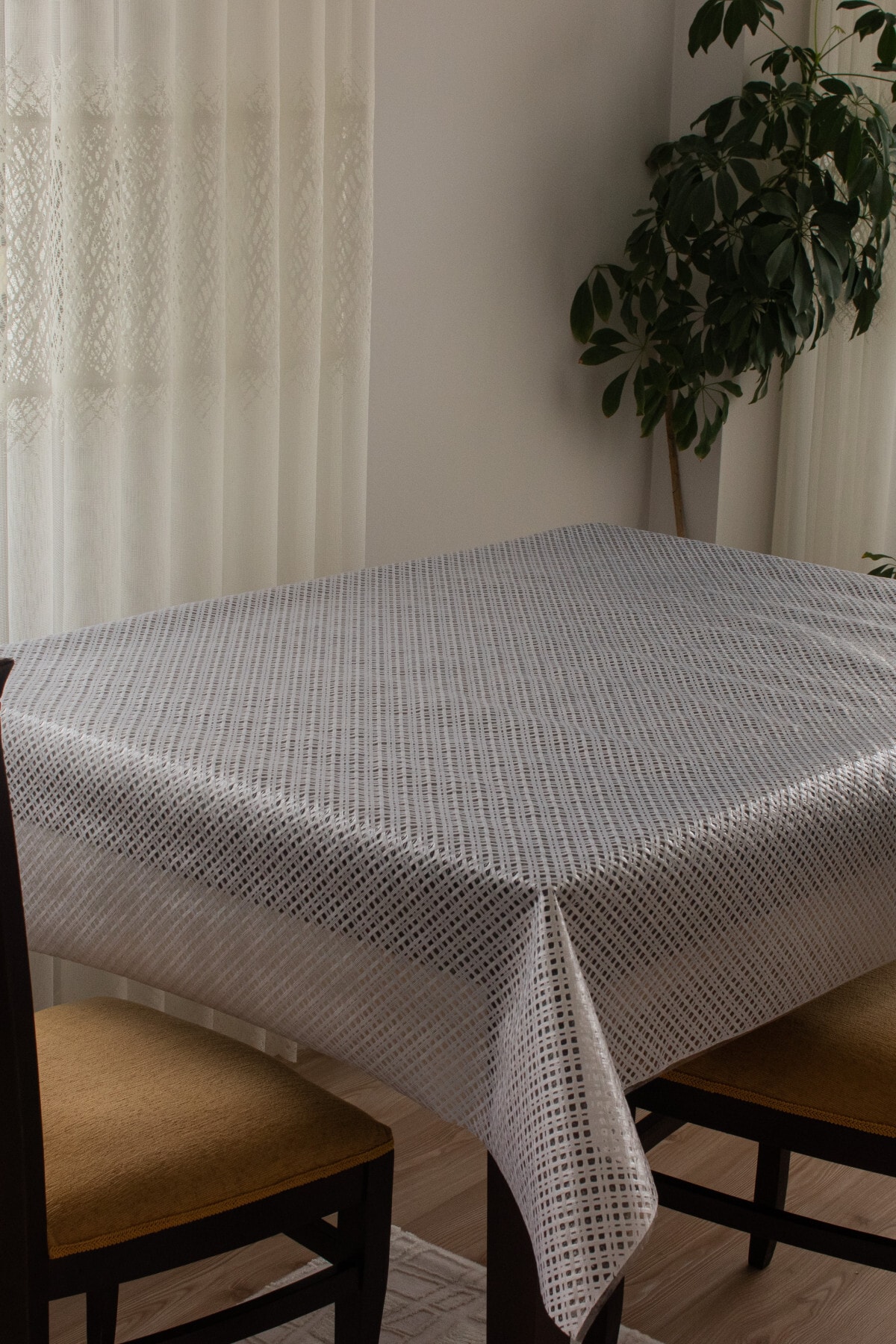 Pvc Gümüş Gri Simli Silinebilir Muşamba Masa Örtüsü S3200-10 Pvc Gümüş Gri Simli Silinebilir Muşamba Masa Örtüsü S3200-10 140 x 170