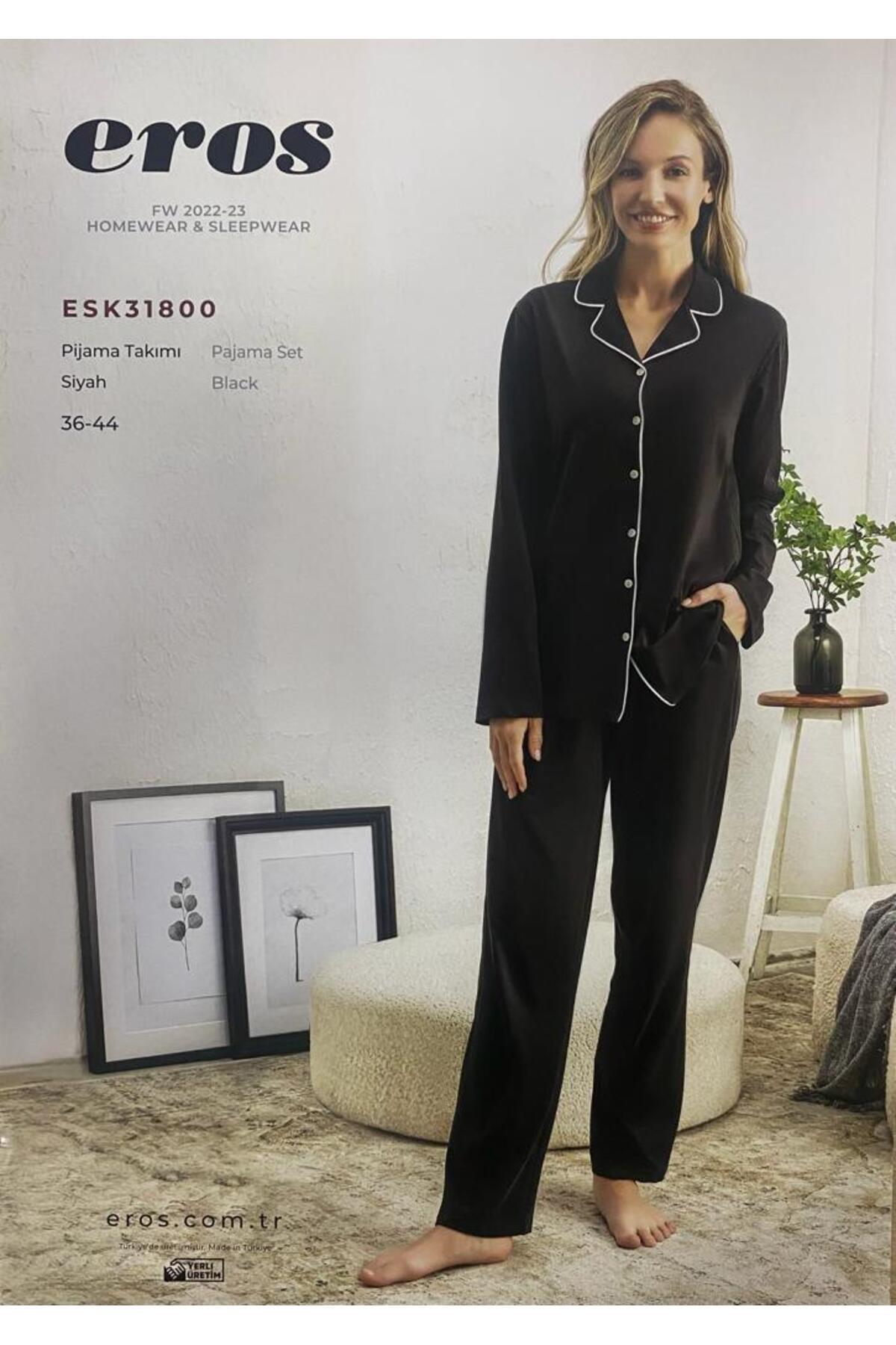 Kadın Uzun Kollu Gömlek Pijama Takım-lacivert Kadın Uzun Kollu Gömlek Pijama Takım-lacivert 31800L 42