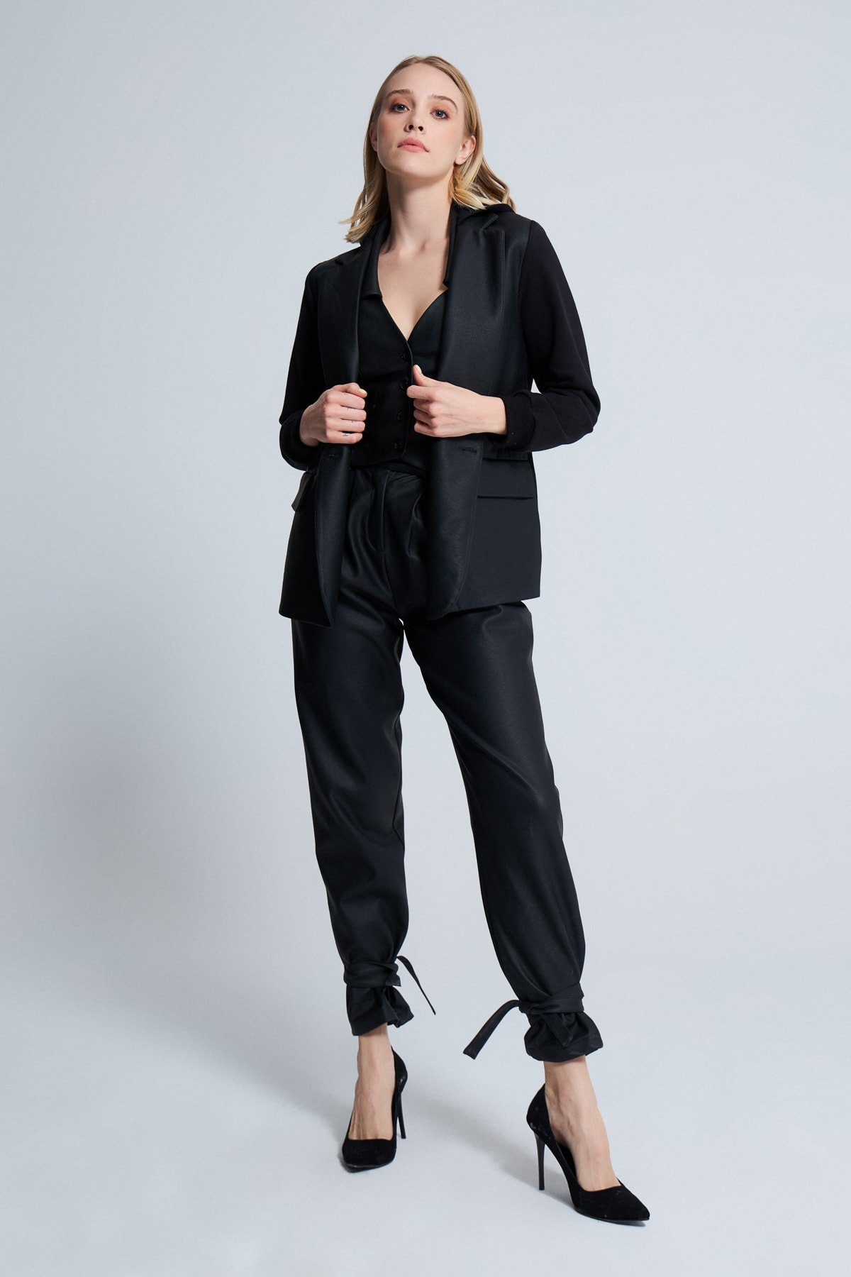 Mavi Deri Kruvaze Belden Oturmalı Ceket Mavi Deri Kruvaze Belden Oturmalı Ceket BKC-3004 46