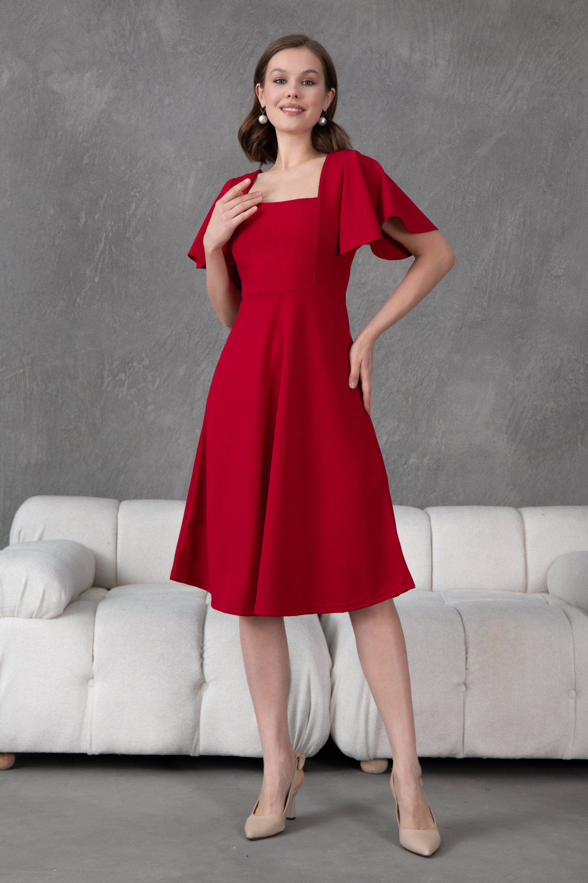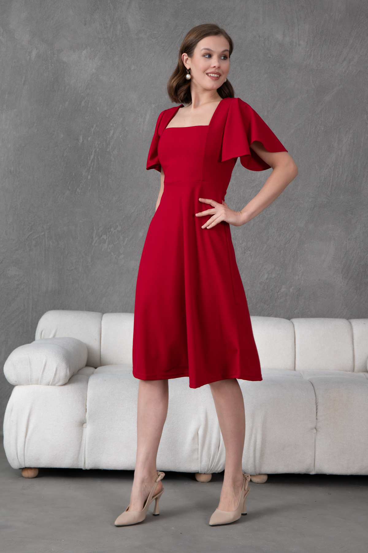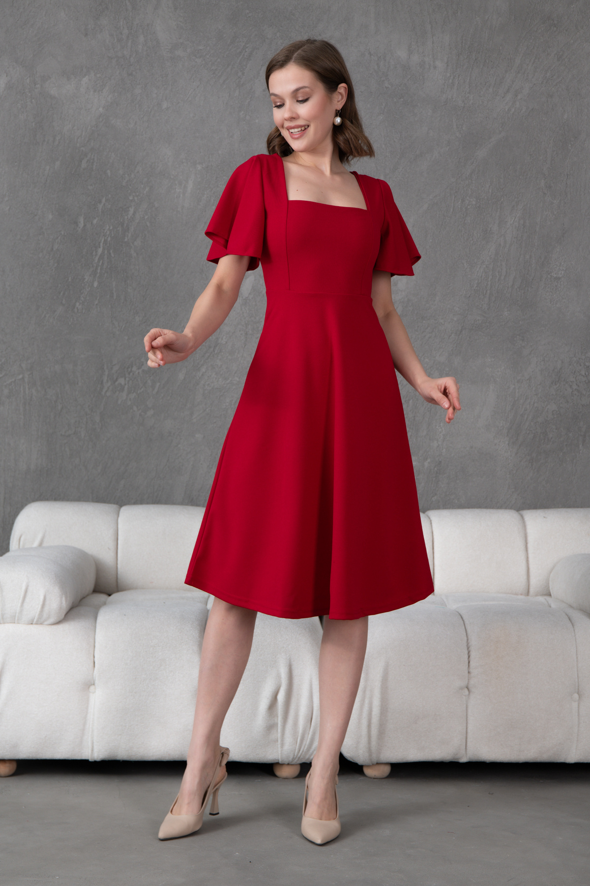 Kadın Kolları Volanlı Esnek Scuba Krep Kumaş Kare Yaka Midi Boy Kırmızı Elbise 082 Kadın Kolları Volanlı Esnek Scuba Krep Kumaş Kare Yaka Midi Boy Kırmızı Elbise 082 4S1B-DKS-082 42
