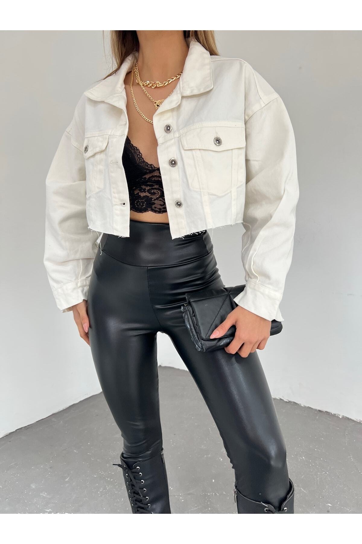 Kadın Crop Kesim Denim Ceket Oversize Kalıp Kadın Crop Kesim Denim Ceket Oversize Kalıp Laluna612KCCD L