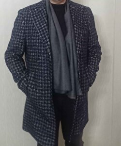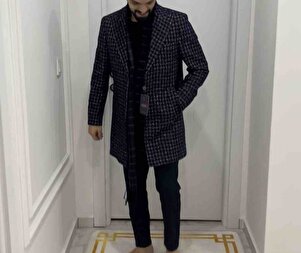 Kareli Slim Fit Geniş Yaka Yün Erkek Kaban Lacivert - 21255.22K Kareli Slim Fit Geniş Yaka Yün Erkek Kaban Lacivert - 21255.22K 58