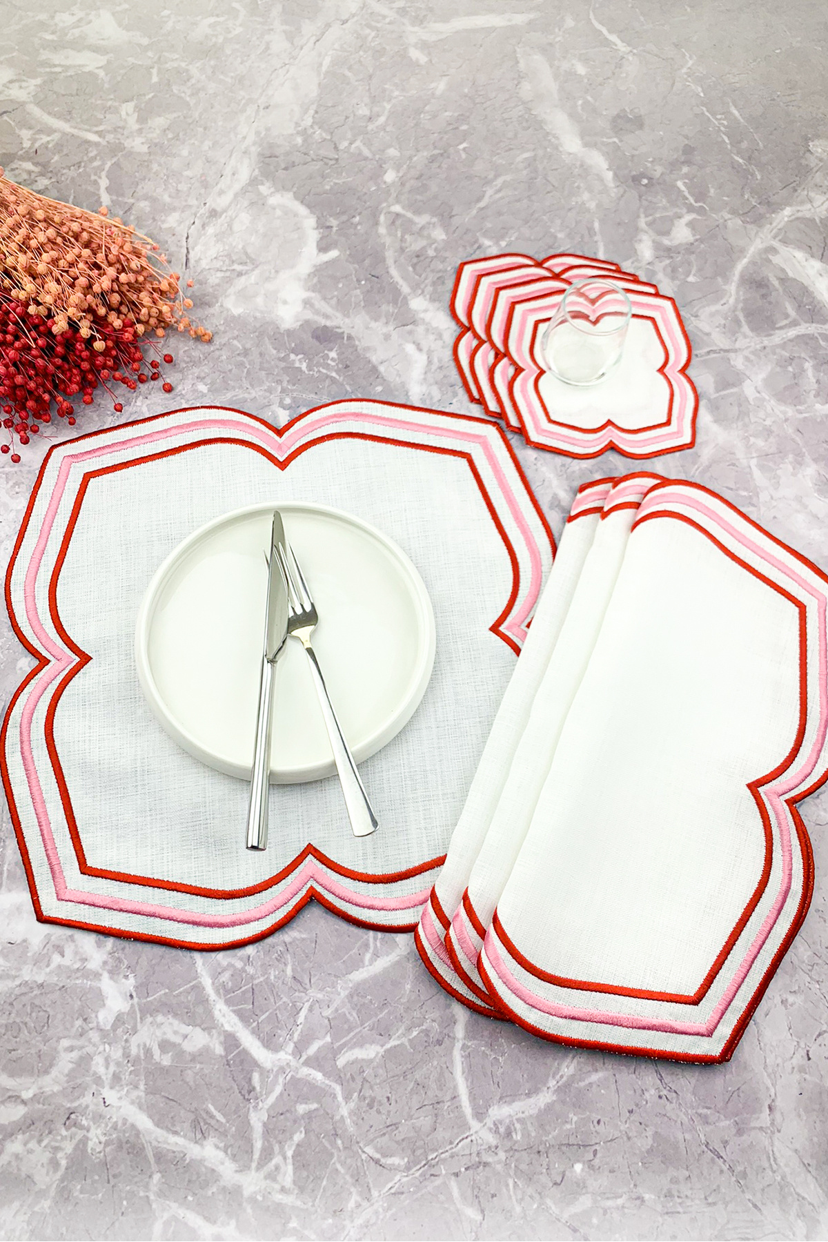 Pembe Renkli Çift Sargı Nakışlı 12 Parça Set Amerikan Servis Ve Kokteyl Peçetesi Pembe Renkli Çift Sargı Nakışlı 12 Parça Set Amerikan Servis Ve Kokteyl Peçetesi WRE2CIFTSAMEKOK12 تک سایز