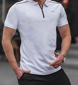 Erkek Beyaz Basic Fermuarlı Polo Tişört 6076 Erkek Beyaz Basic Fermuarlı Polo Tişört 6076 XL
