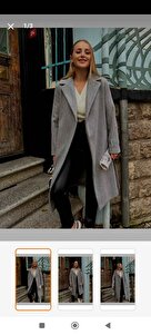 Gri Kuşaklı Uzun Kaşe Kaban Gri Kuşaklı Uzun Kaşe Kaban A1786 2XL