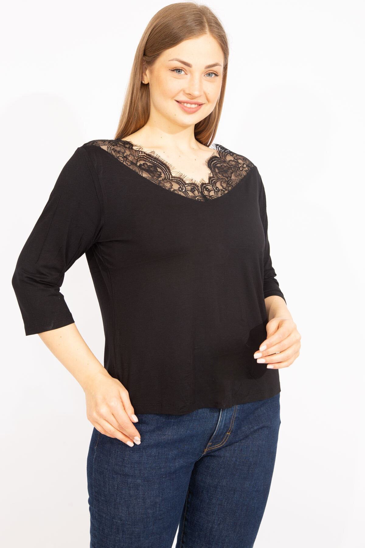 Kadın Siyah Büyük Beden Dantel Detaylı Bluz 65n35576 Kadın Siyah Büyük Beden Dantel Detaylı Bluz 65n35576 65N35576 54