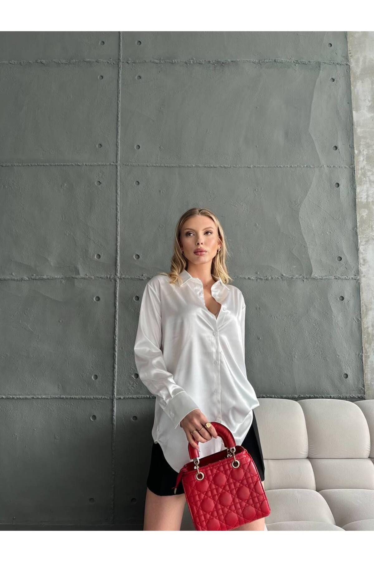 Kadın Uzun Kol Saten Gömlek 255123 - Kadın Uzun Kol Saten Gömlek 255123 - 230124 XL