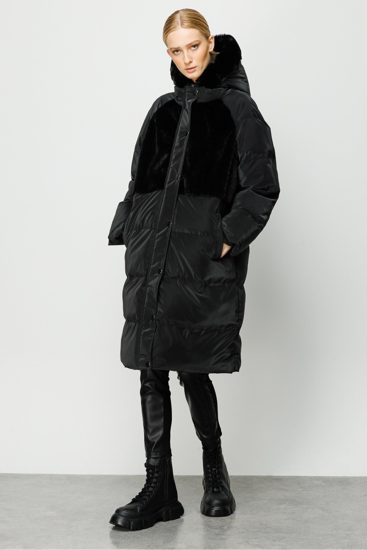 Modailgi Kapüşonlu Uzun Kaban Siyah Modailgi Kapüşonlu Uzun Kaban Siyah ILG230KBN02105 44