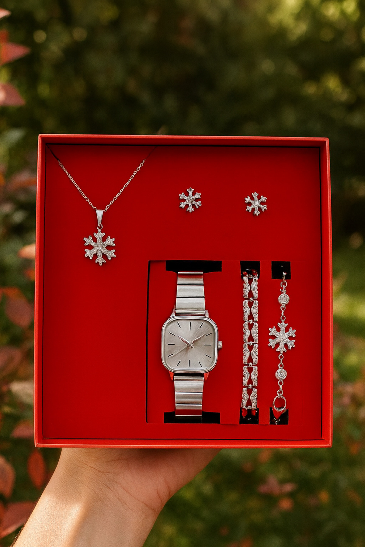 Kadın Kol Saati Saat, Bileklik, Kolye, Küpe Hediye Seti Kadın Kol Saati Saat, Bileklik, Kolye, Küpe Hediye Seti ST2345 تک سایز
