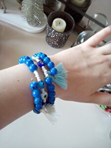 Tasarım Dolamalı Nazar Cam Boncuk Püskül Bileklik Tasarım Dolamalı Nazar Cam Boncuk Püskül Bileklik KP4461 تک سایز