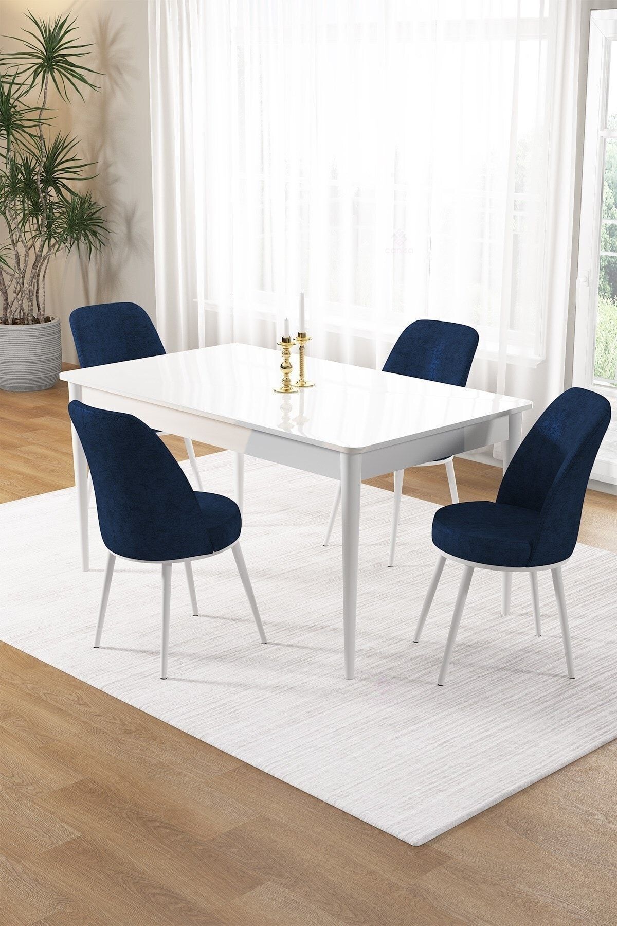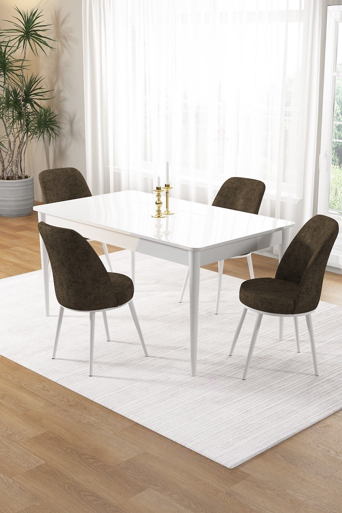 Tia Serisi 80x132 Açılabilir Mdf Mutfak Masası Takımı Beyaz Masa Gold Detay 4 Krem Sandalye Tia Serisi 80x132 Açılabilir Mdf Mutfak Masası Takımı Beyaz Masa Gold Detay 4 Krem Sandalye 2-TIA1BYZ004GLD تک سایز