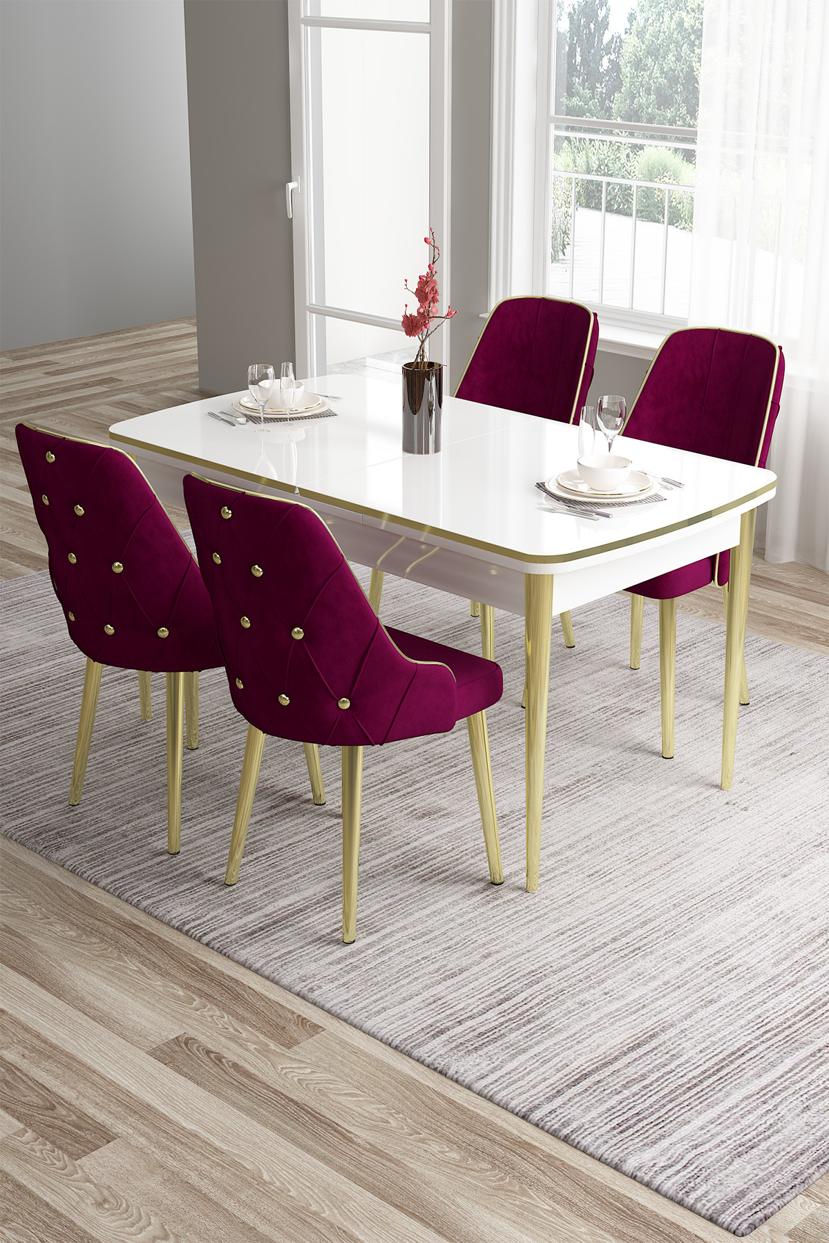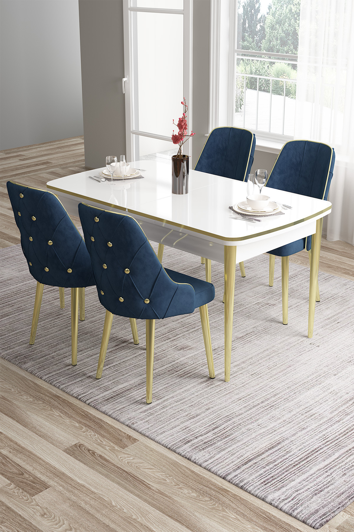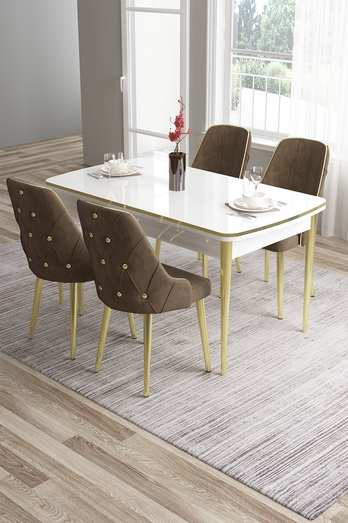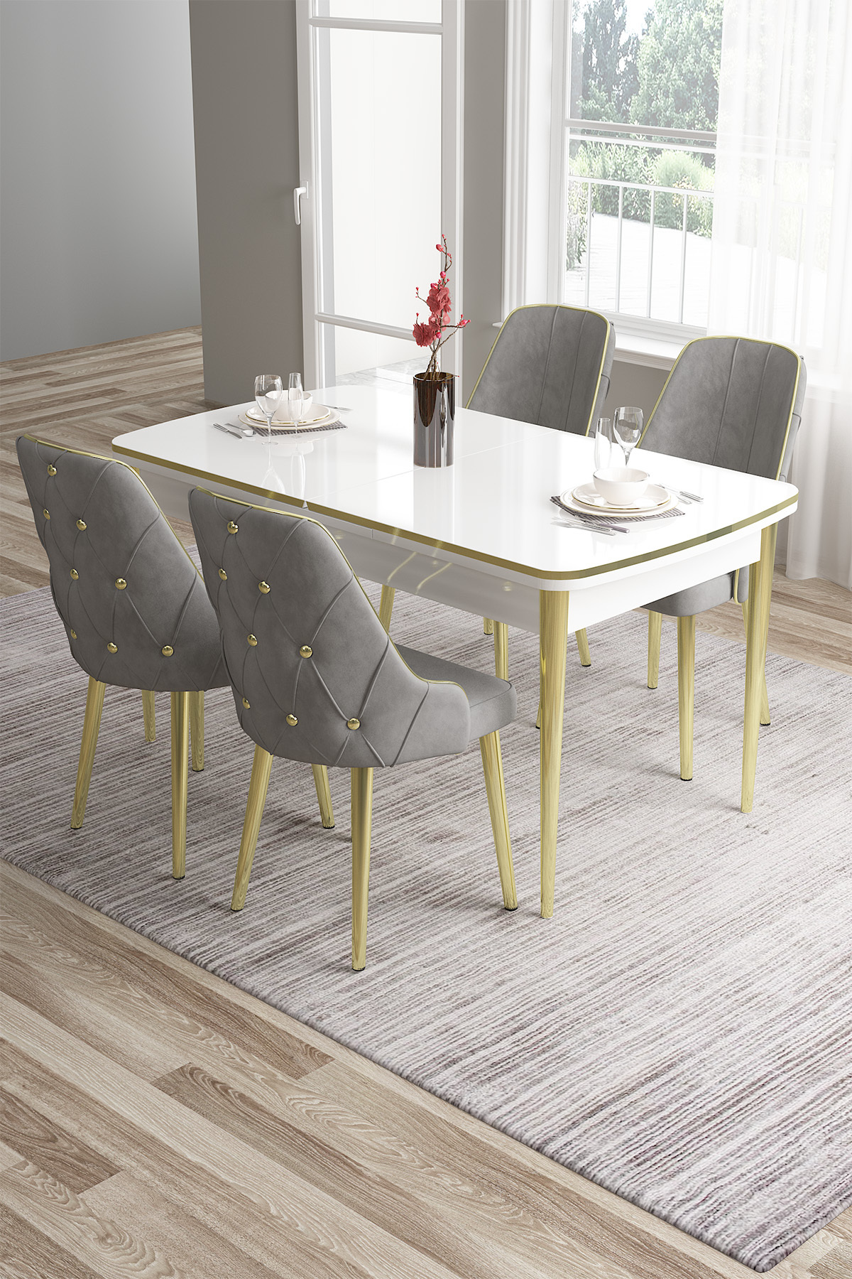Tia Serisi Mdf 80x132 Açılabilir Beyaz Gold Detay Yemek Masası Takımı Ve 4 Antrasit Sandalye Tia Serisi Mdf 80x132 Açılabilir Beyaz Gold Detay Yemek Masası Takımı Ve 4 Antrasit Sandalye 22TIA01BYZ04GLD تک سایز