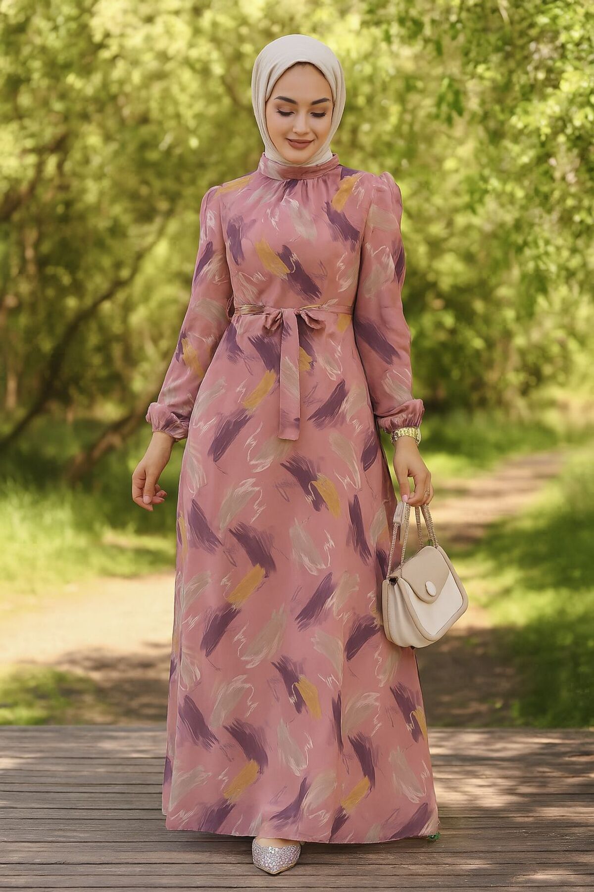 Çiçek Desenli Pudra Tesettür Elbise 27942PD Çiçek Desenli Pudra Tesettür Elbise 27942PD OZD-27942 54