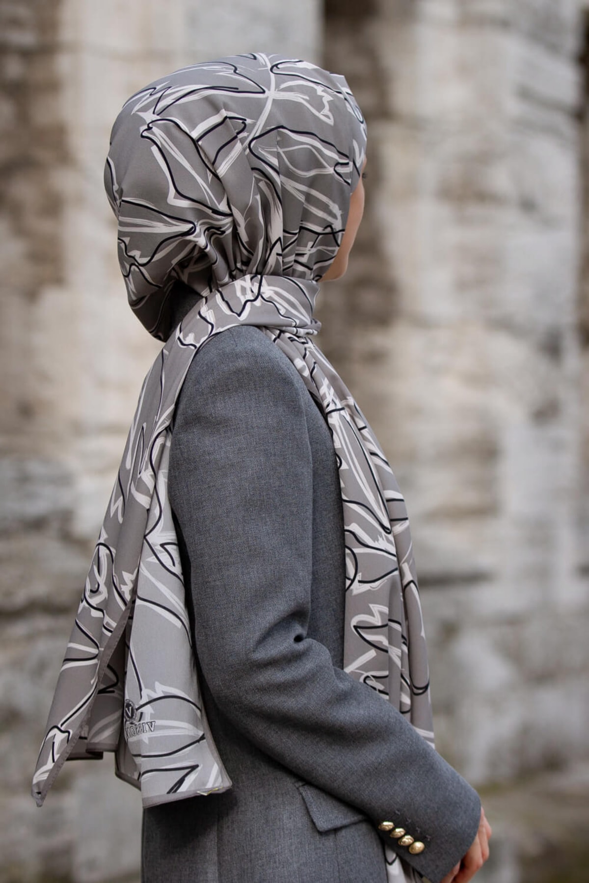 Kadın Lüks Medine Ipeği Şal Gri-3 Kadın Lüks Medine Ipeği Şal Gri-3 DGN50920 75 x 190